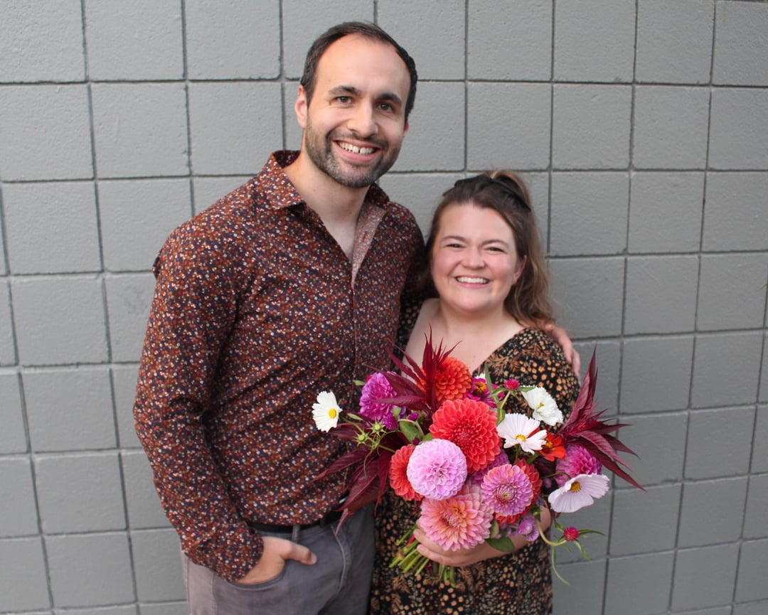 8) hi! This is us 😊 with a wedding bouquet we did for a friend this summer