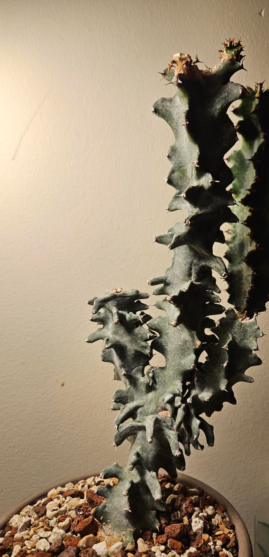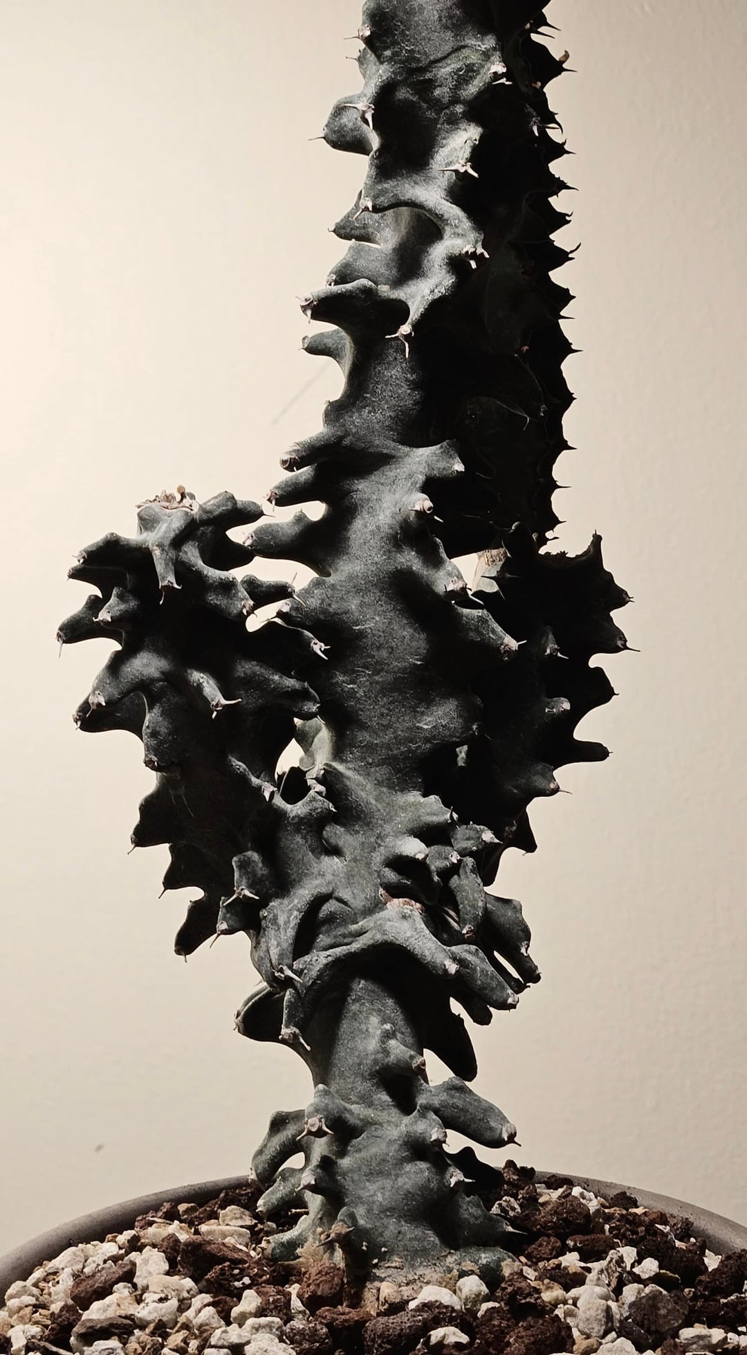 Lovely old cutting I picked up at the nursery today. Alotta character. The white stuff is just water mineral deposits rather than what appears to be farina. I used Grayscake in the first image to highlight its alien look. by blindfoldpeak EuphorbiaceaeSucculent Varieties 2 Comments dancinturnip 5 hours ago Wild, I thought that first picture was in black and white at first blindfoldpeak 4 hours ago Grayscale, not Grayslake