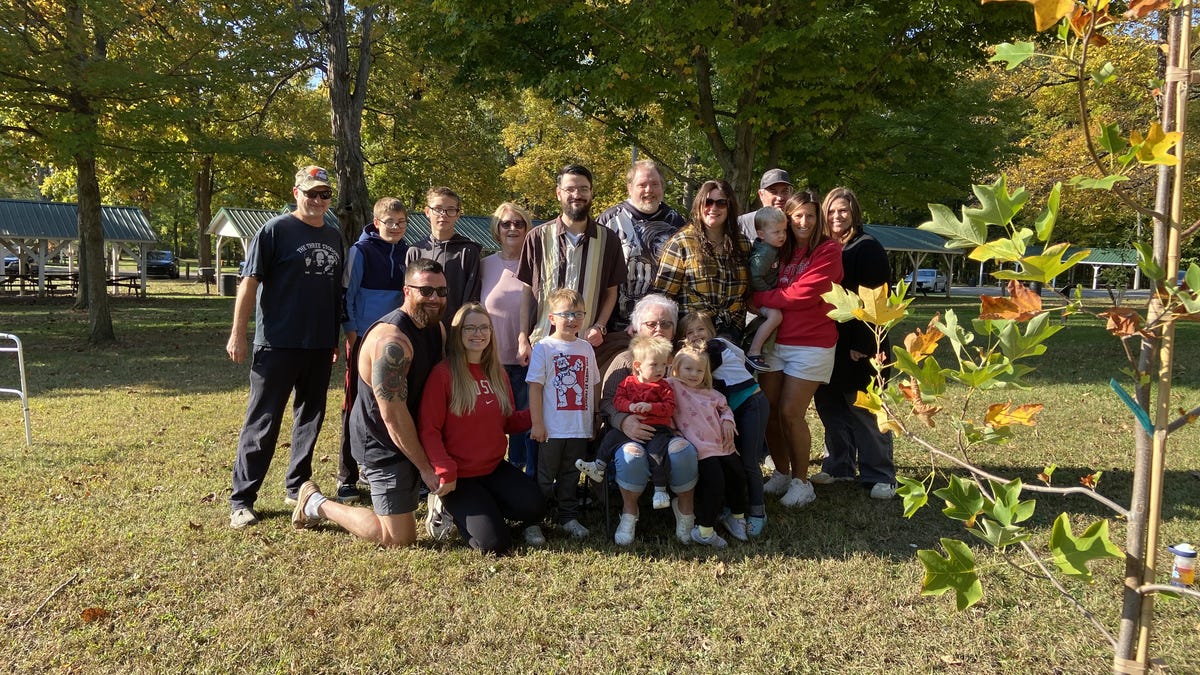 Earlier that morning, which was a sunny, pleasant day, the Ponziani family gathered up near the Aumiller carillon bell tower. Before they arrived, family friend Jeff Panovich prepared a hole and set a tulip poplar tree in place. It was declared Autumn Arbor Day, an event the commission has planned for several years.