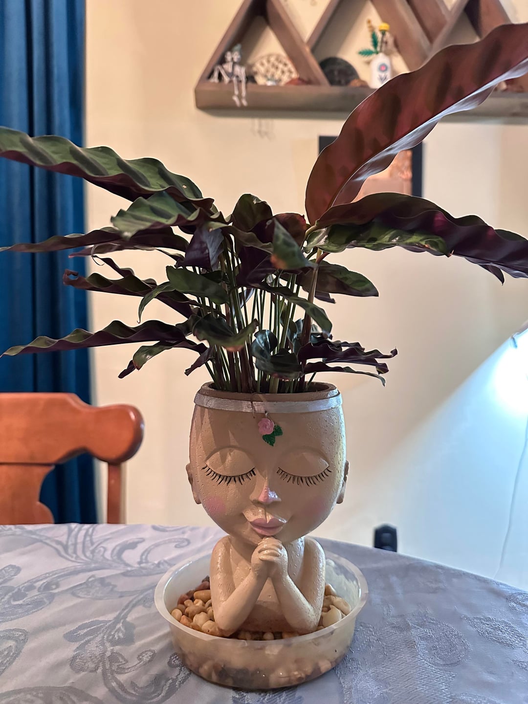 I love my plant. She’s healthy and lovely but I’m at a point where I’m concerned about how I’d repot her. This pot has good drainage so no immediate concerns, but I think it could use to size up a bit. Whether it needs a repot now or can wait a bit, what’s the best approach to getting it safely out of this pot? It’s one of my favorite and healthiest plants so I really don’t want to damage her. TIA.