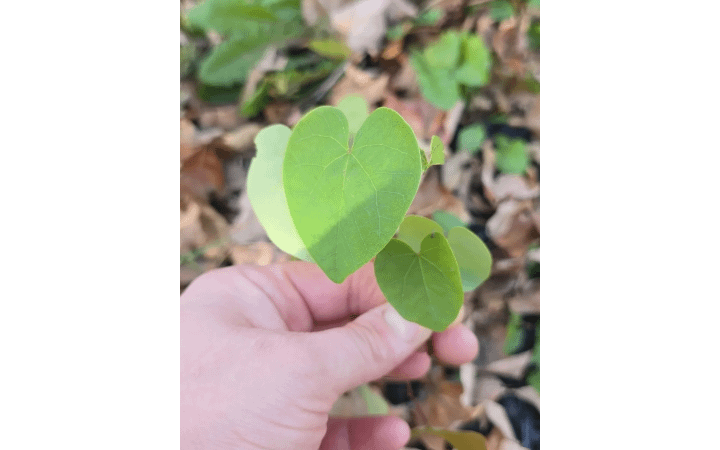 That sounds right. Eastern redbud is a smallish tree with vividly red/pink flowers in early spring, and attractive foliage from spring until fall. Their seeds grow in bean-like pods and get carried around by birds and other animals.