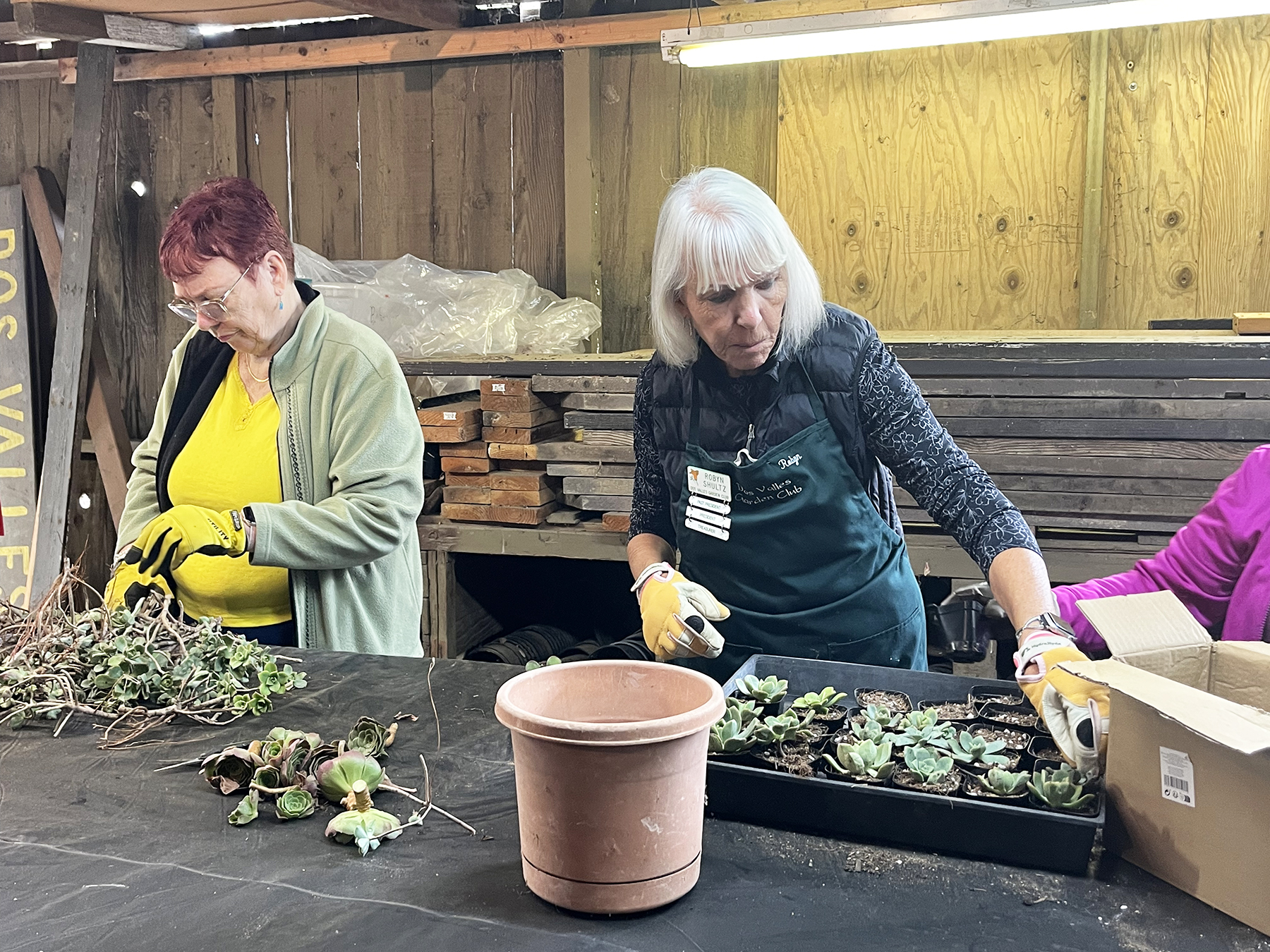 Members of Dos Valles Garden Club propagating plants for the garden club: (from left) Leida Van Zoest and Robyn Shultz.
