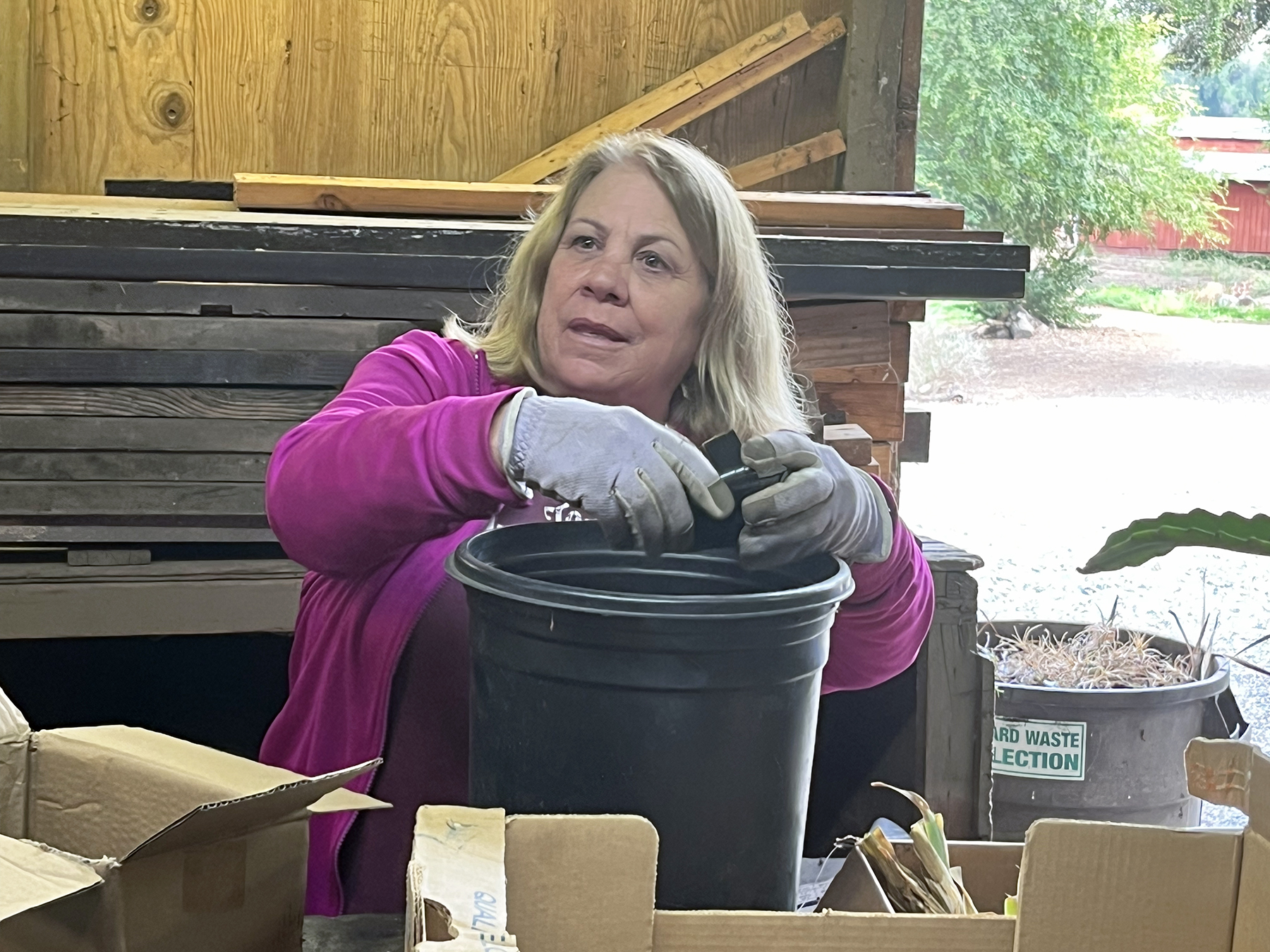 Member of Dos Valles Garden Club propagating plants for the garden club: Liz Martinez.