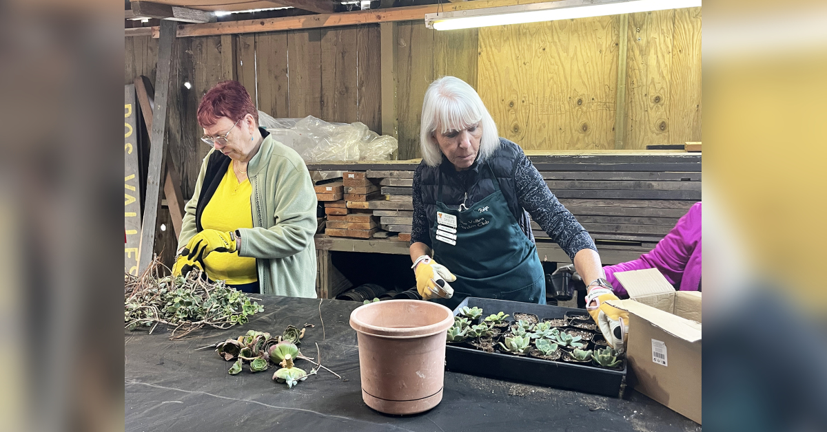 Members of Dos Valles Garden Club propagating plants for the garden club: (from left) Leida Van Zoest and Robyn Shultz.