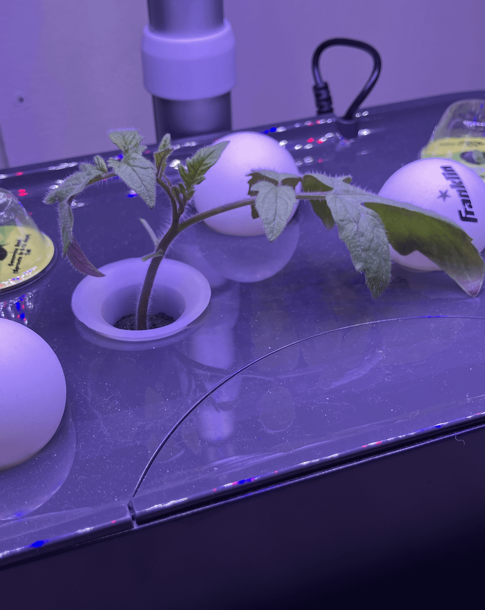 20 day tomato plant. i added one cycle of nutrients in the exact amount that they recommended. water is super clean and nice. the other 2 pods are just mint and basil and they're just small sprouts right now so they shouldn't be taking too many resources. not sure what's going on…