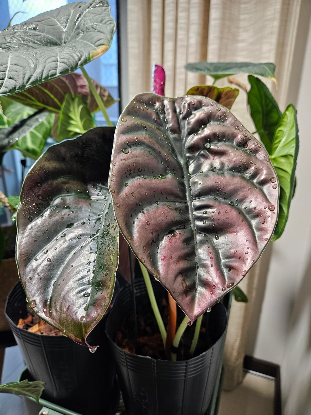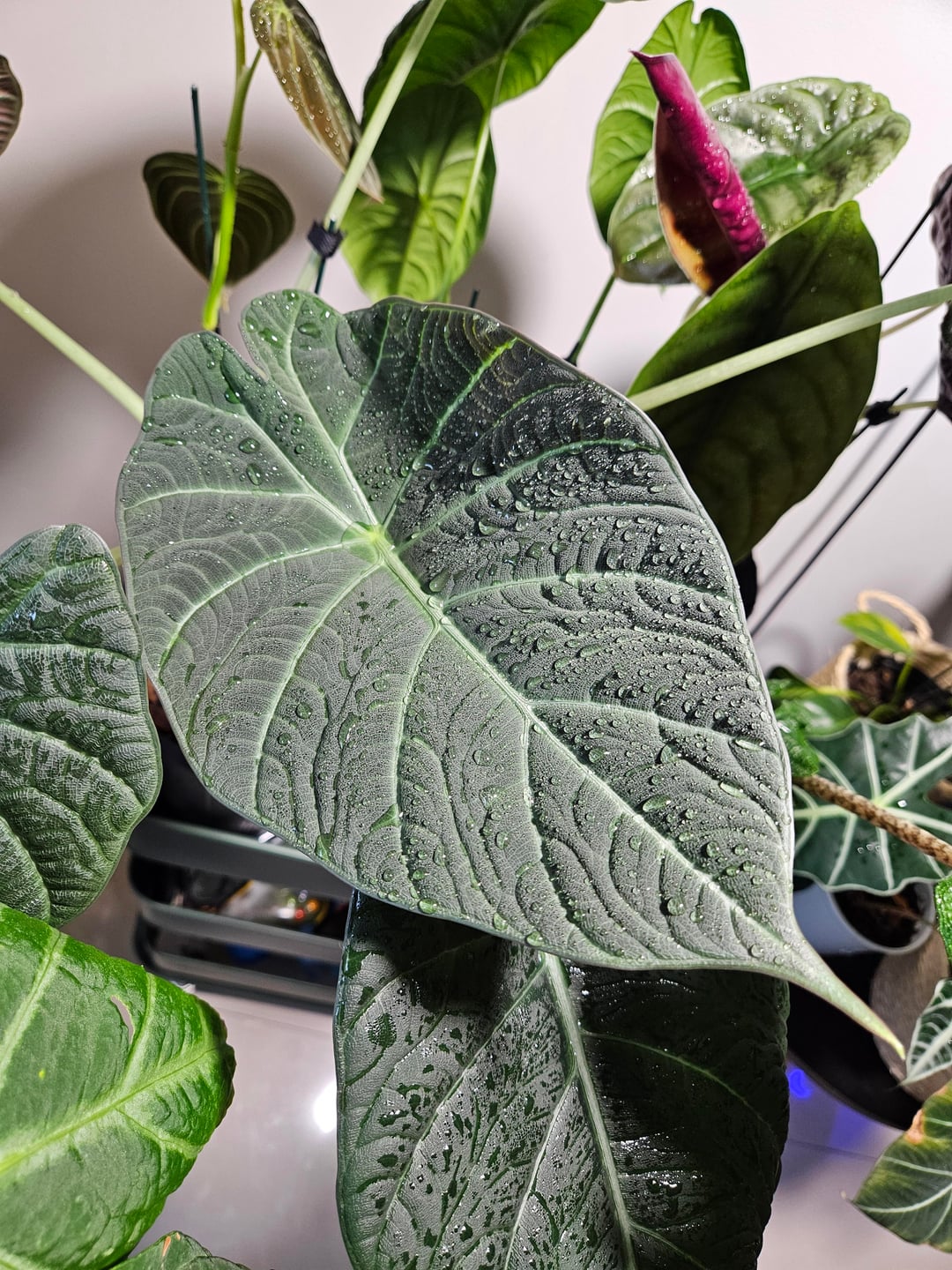 On hotter days I always try to spray water on the alocasias to keep them hydrated!! I think it's so cute how the water drops look on the leaves 😍 by anthurium_laila alocasia 4 Comments forever29_ 2 days ago Wow! What do you feed your alocasias? all-the_small-things 2 days ago Are these truly as big as they appear in these pics? They’re GORGEOUS No-Garlic8307 2 days ago They’ve never burned? How do you manage that? astongt615 2 days ago What are the first and last ones? Gorgeous!!
