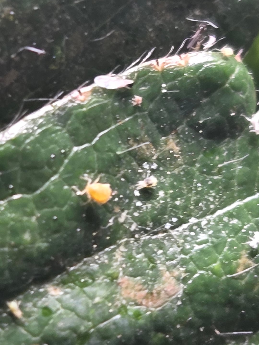 Pretty sure these are Spider Mites, but maybe also/additionally Aphids? Looking for some advice in getting rid of these guys. Just discovered yesterday so no neem oil or diatomaceous earth yet.