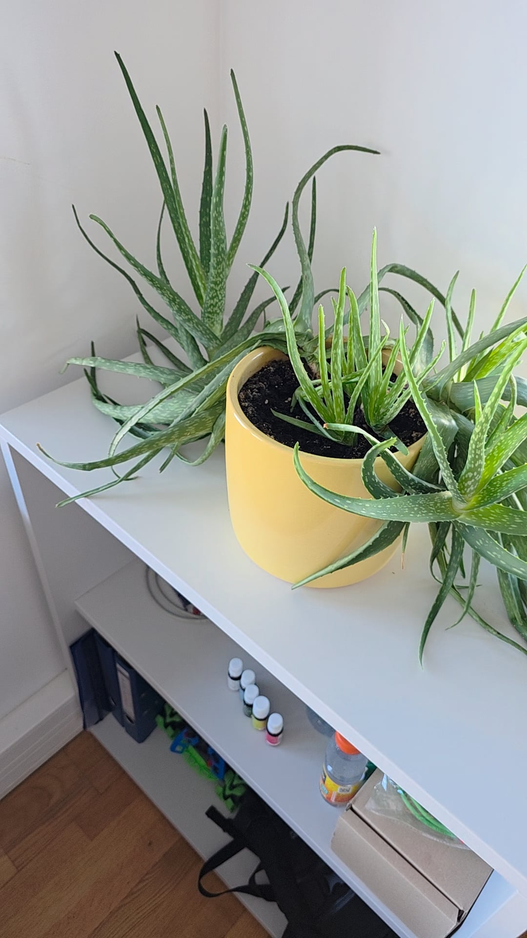 I started before 4 years with two aloe veras in the same pot, and they’ve grown incredibly fast — even started flowering a few weeks ago. Now they’re spilling out of the pot, and new shoots keep popping up from the center every week.
