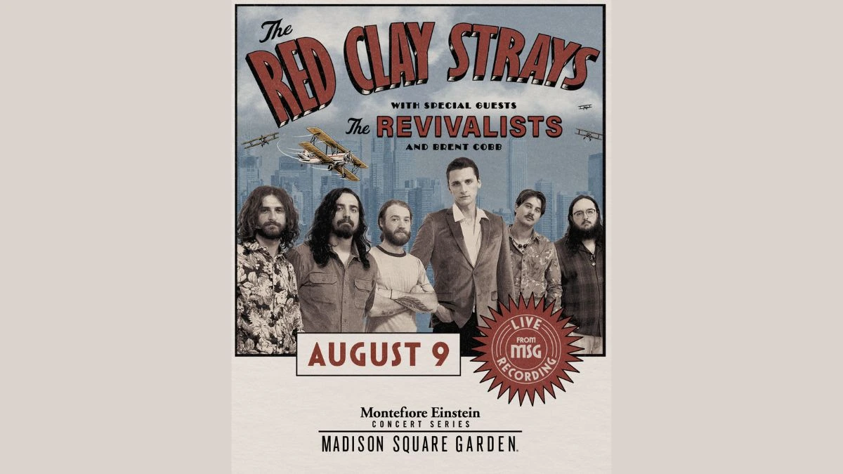 The Red Clay Strays will headline New York City’s Madison Square Garden for the first time on August 9, 2026. The concert, titled “Live at Madison Square Garden,” will feature special guests The Revivalists and Brent Cobb. The performance will also be recorded live.