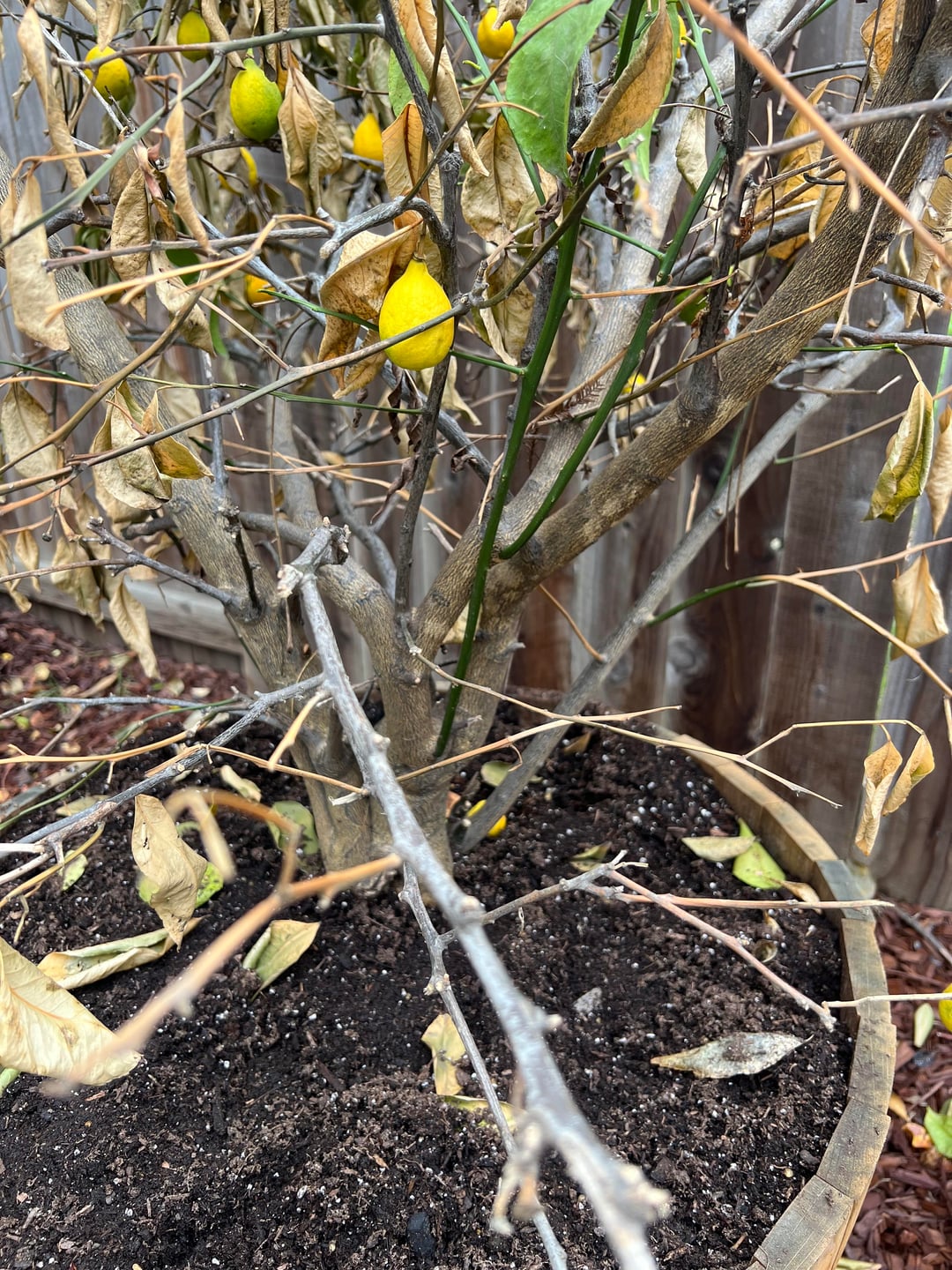 Please help. This dwarf lemon tree was transplanted about 5 weeks ago. It is not doing well. I want to save it! by BeautifulMousse375 #arboricultureArborists 4 Comments IllustriousAd9800 3 days ago How much water has it been getting per day? pocket_full_of_dew 3 days ago Say goodbye BackgroundAsk2350 3 days ago Cant transplant when a tree is bearing Fruit, as its putting its Energy towards the fruit. Greymeade 3 days ago Does that pot have appropriate drainage? Tell us about the watering.