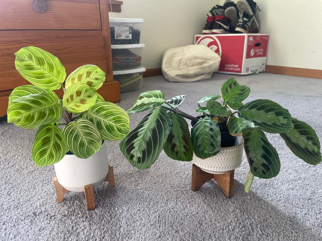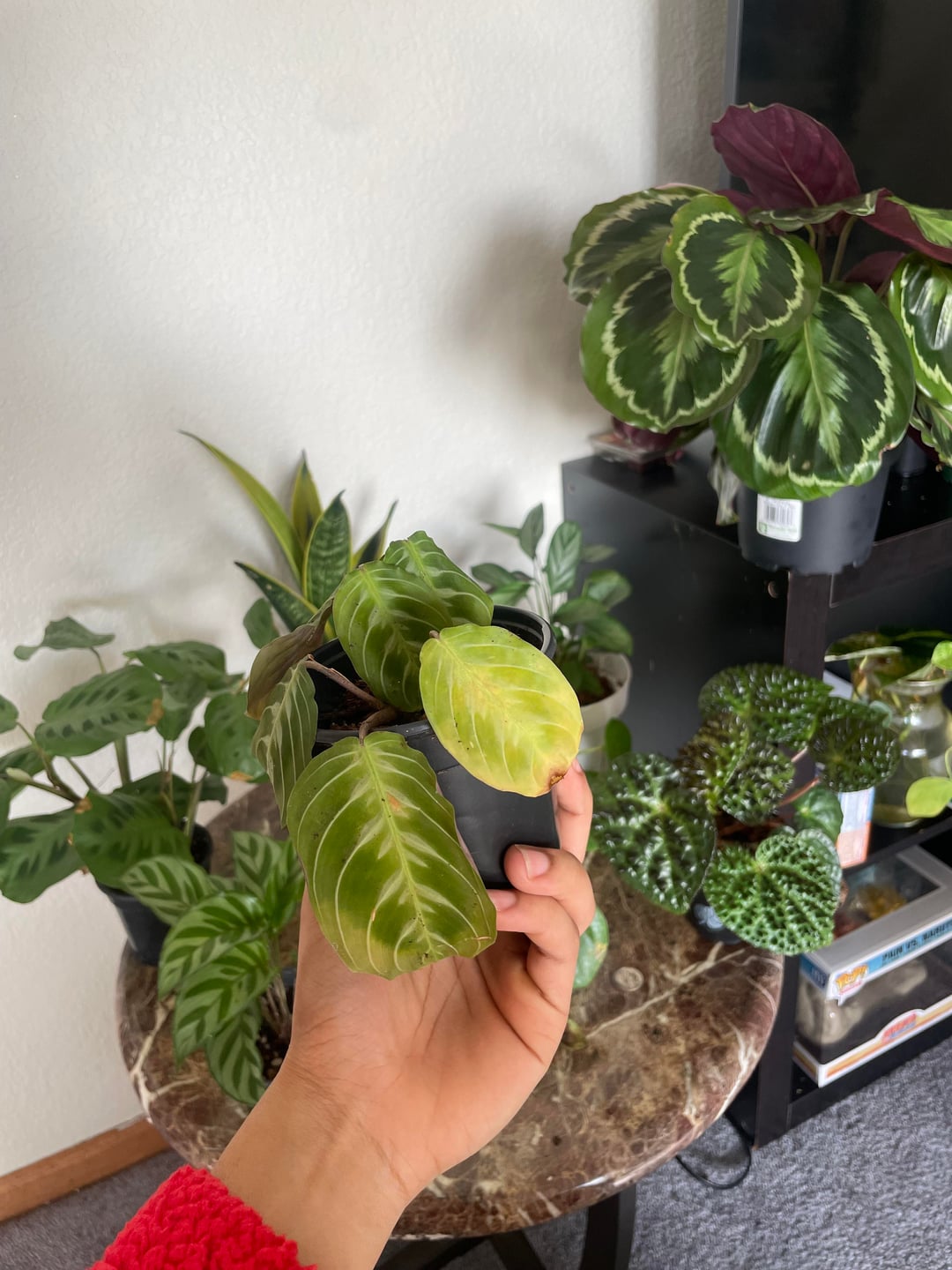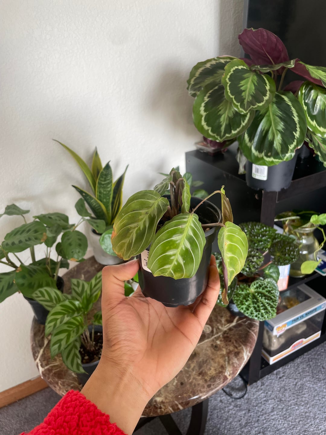 I am wondering is this a black maranta or a cats mustache. I have a rescue version I have to wait to start thriving to actually see what it is. In the mean time I had the plant shop hold these for me because they know I love calathea! ( last pictures is the struggling maranta rescue just repotted because old soil was trash )