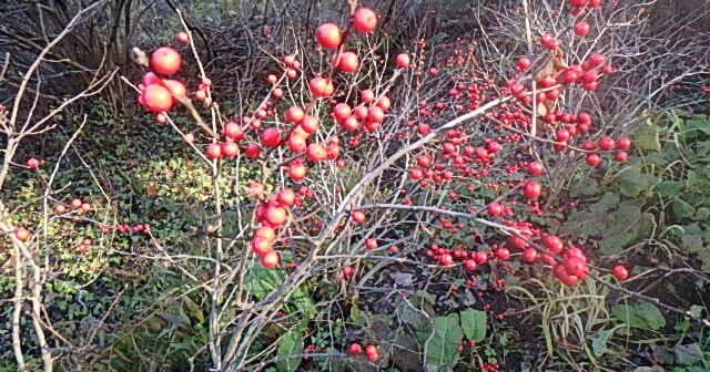 Winterberry is not blooming now, but it is loaded with bright red berries. A native shrub, it grows in swamps and wet places in the wild, but it also can be used in regular garden soil. It is dioecious, meaning there are male and female plants. Fortunately, the nursery industry labels their stock as male or female. Only one male is needed for most plantings. It looks great in a vase with cuttings of witch hazel, or with sprigs of evergreens.