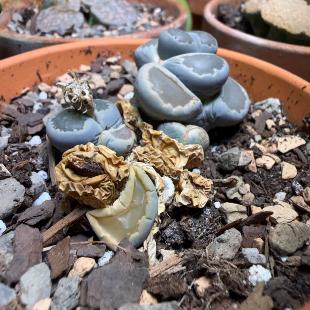 Here are a few photos of the same cluster. I seem to have one that has flowered and died, one that is done flowering and seems fine, and another that has split and split and split again without flowering. What do I do? Leave it alone? Remove the seemingly dead one? Separate them all?