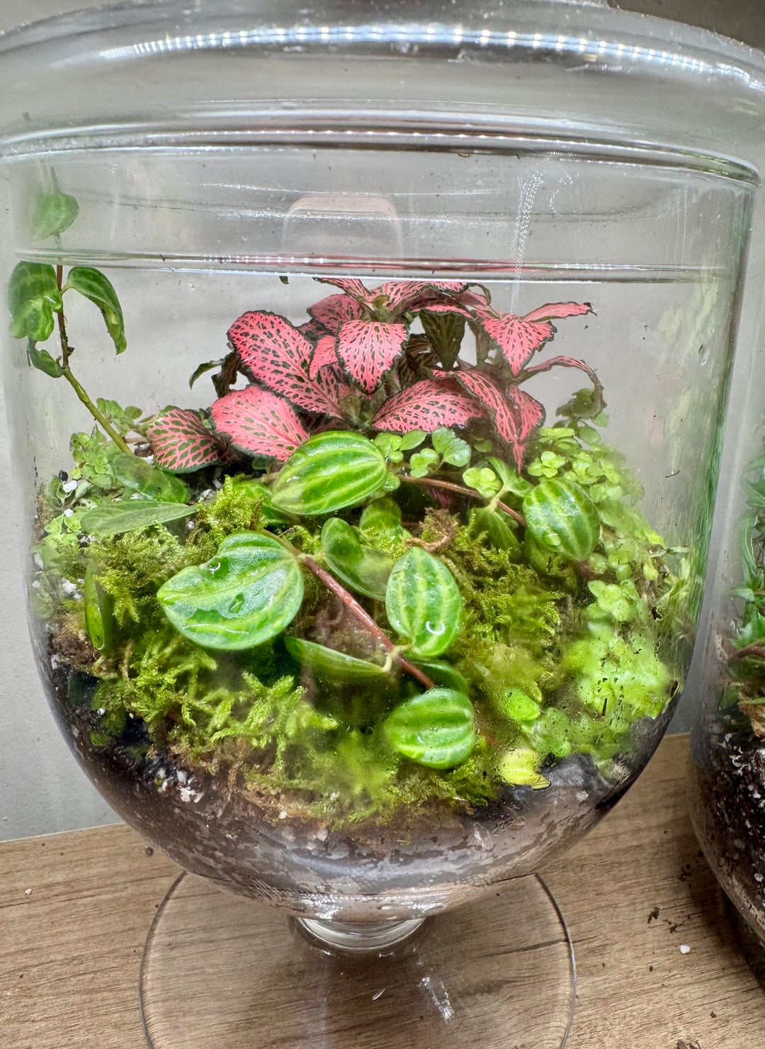 As mentioned there’s a wide variety of plants but mostly pilea, Peperomia, ferns, begonias, mosses, fittonia. I honestly don’t know the exact names of many of them, I just go nuts at the local plants shops 😅