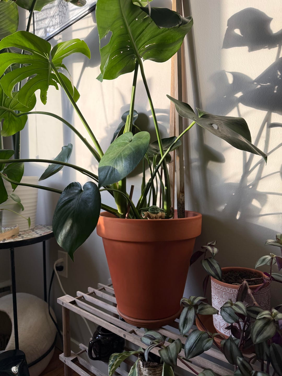 I have other monstera in the same grow room with the same lighting conditions…one massive deliciosa (“The Big Guy”) who tossed a new leaf yesterday, 2 albos who literally race each other always throwing new leaves on the exact same day, a baby white monster who FINALLY put out his first new leaf since his arrival several weeks ago..