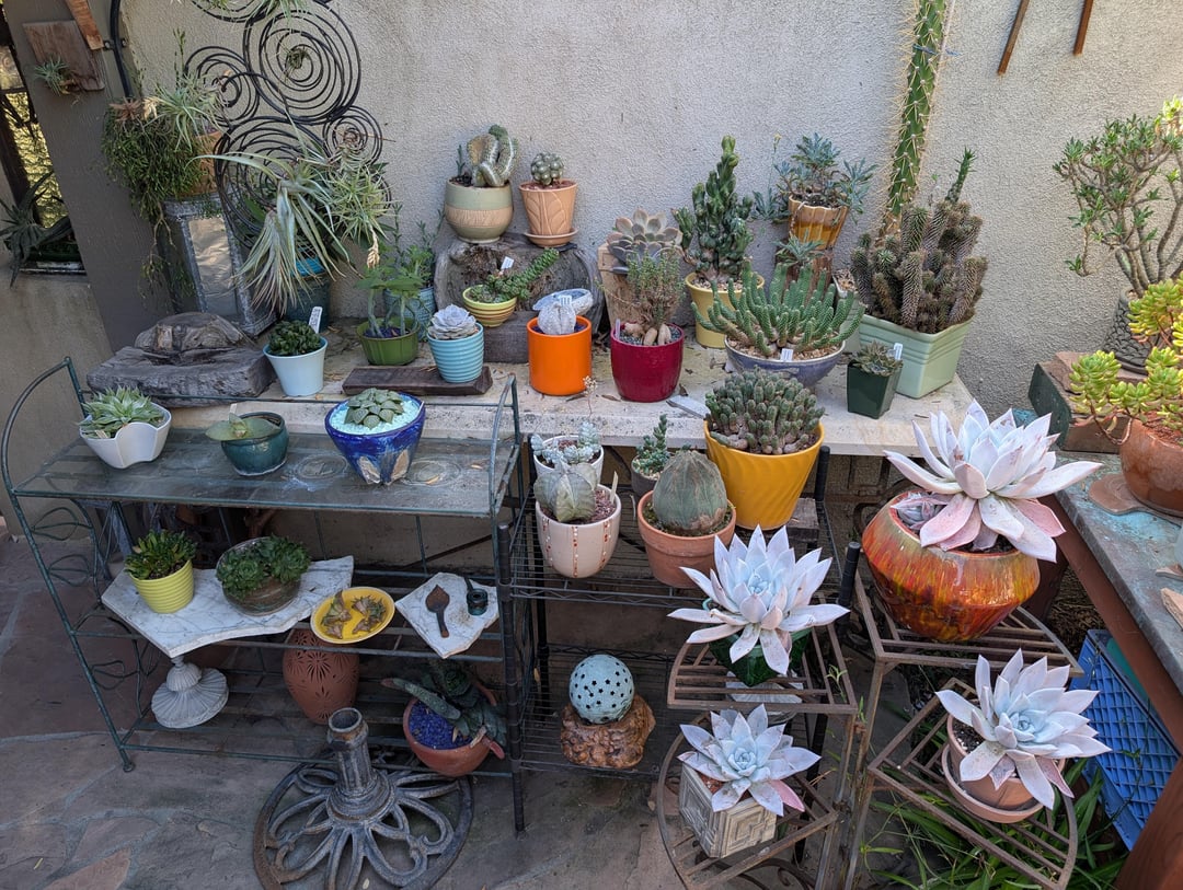 This is in Southern California, my dad has been collecting succulents for around 15 or 20 years, in the last few years he's also started adding more cacti, tillandsias, and the occasional orchid.