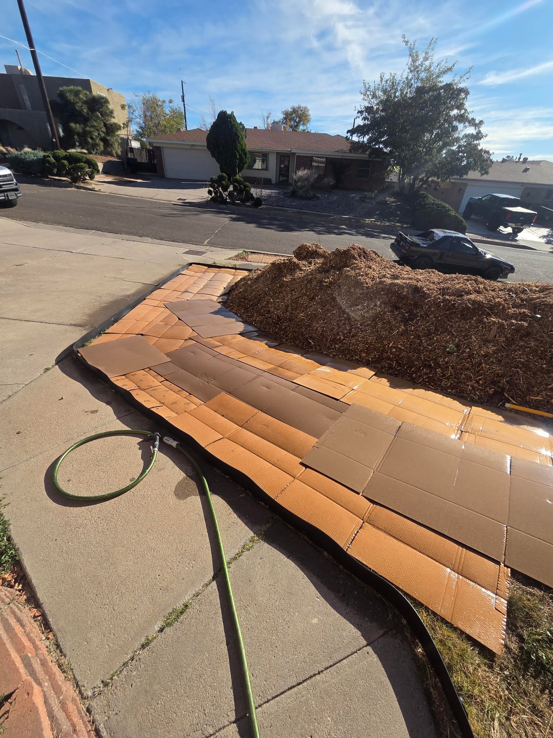 Very excited to get this done. Had a trailer of mulch delivered and spent about a week sheet mulching. Will be planting more trees and natives in the spring.