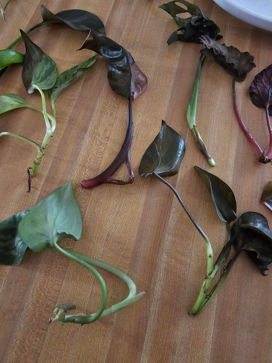 I had about 15 cuttings to propagate, most in water. I tossed them in the oven to keep safe from my cats while they dried out…. forgot and preheated my oven. It got to 320 degrees before my husband realized my mistake. Some of the leaves were noticeable limp right away but not all. I kind of assumed they were done for. Today, 2 days later some are definitely done but some apear saveable but I dont have much experience tbh. Here's photos, what do you think? All the stems are firm.