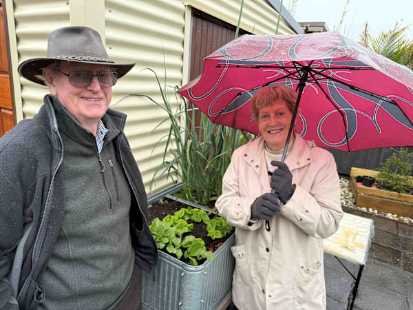 Three veggie patches and raised veggie beds, some close to the backdoor for ease of collection, are enjoying the showers. Tomatoes are well established, natives are a feature and the lawns are looking healthy too.