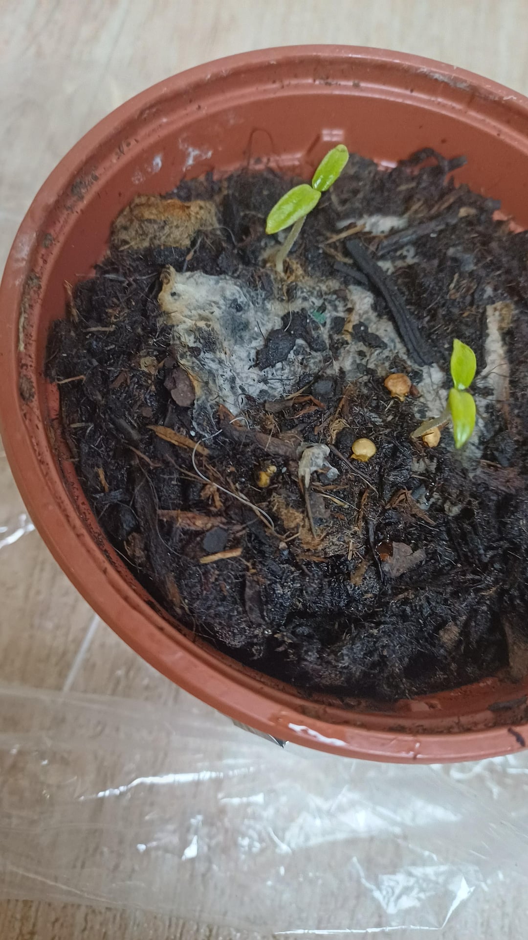 Regardless, the mold growing on top tells me these plants have been kept too wet and you’re probably going to have fungal issues like dampening off.