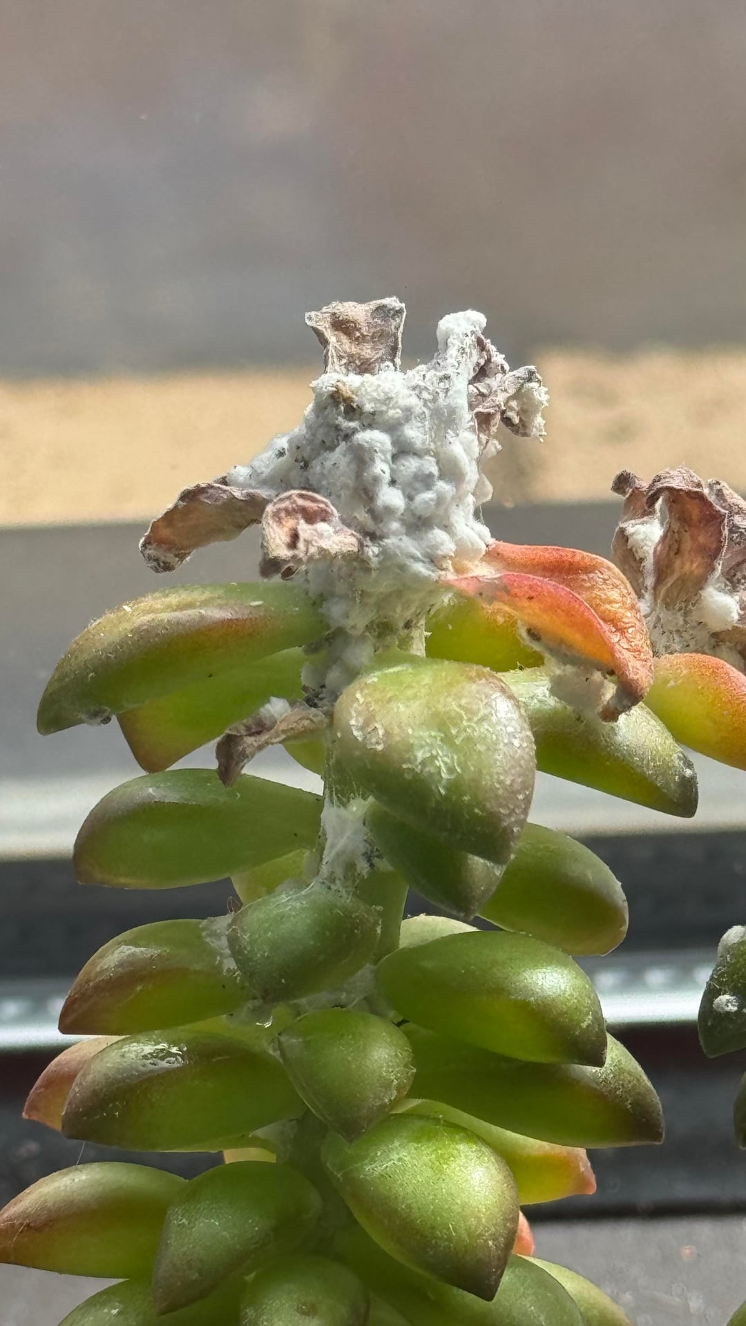 I’m not sure how to edit the original post, but thank you all for your input! They decided to throw it all away as the white stuff was all over everything (even on the windowsill) it seems like they got the bad luck of the draw since all of our succulents came in the same bunch, and they ended up with the one with the infestation? Either way they ask that they do t be judged too harshly cause we’re all very new to this plant life thing 🤣