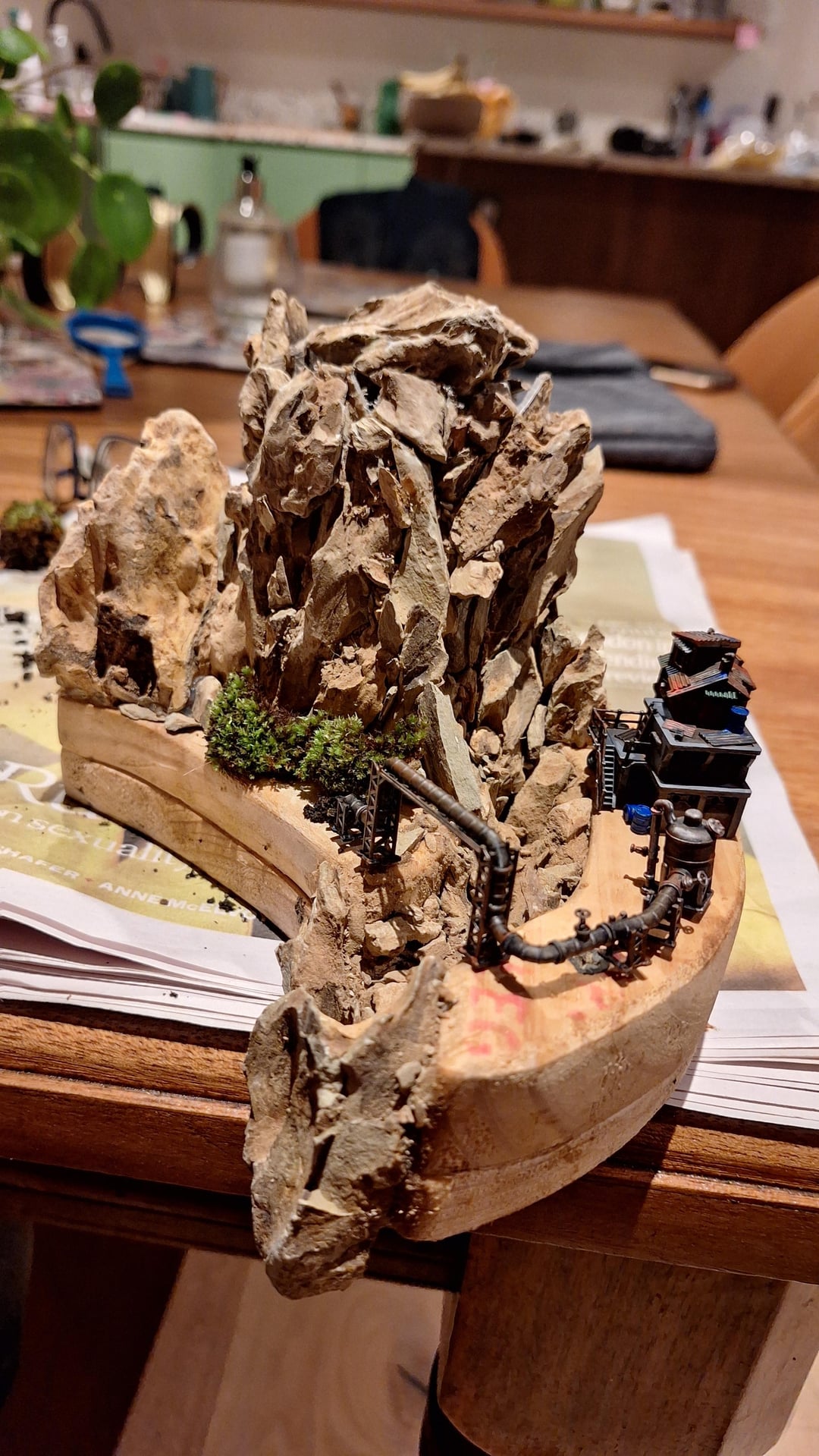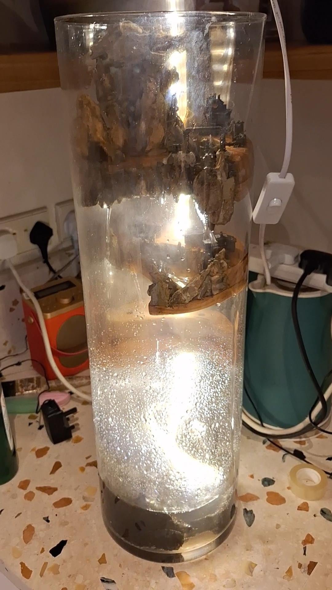 Finally got all the wood shaped and sealed. Moss was delivered yesterday. Connected the lights, fogger and pump. Vase broke when I was handling it.