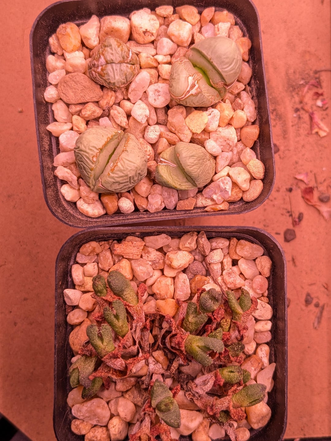 Stomatium is a Summer grower. Light watering with a hand sprayer would help reduce wrinkles without overdoing it and causing rot, as they are sensitive to over watering in winter months – from what I’ve read.