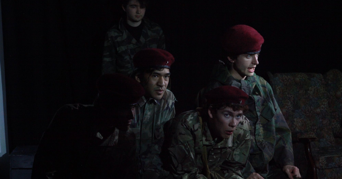 We begin in darkness. Macsen Llewelyn is Private Neads, and his evocative voice fills the small space of the Corpus Playroom. We are immediately transported to the carnage of battle, the sensory experience of a falling shell. Operation Market Garden relays the events of a World War 2 offensive of the same name as recorded in the real diary of Neads, a Welsh Paratrooper. In documenting the experience of his small unit, this is a powerful and skilful piece of verbatim theatre.