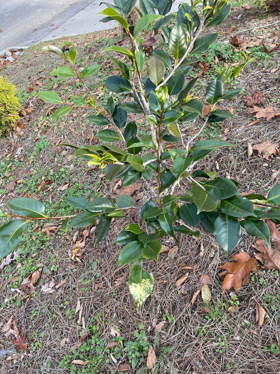 We got this camellia back in 2022 from the camelia farm in Charleston. It has struggled to grow since then and these yellow splotched leaves have popped up now(there were two I pulled one off)