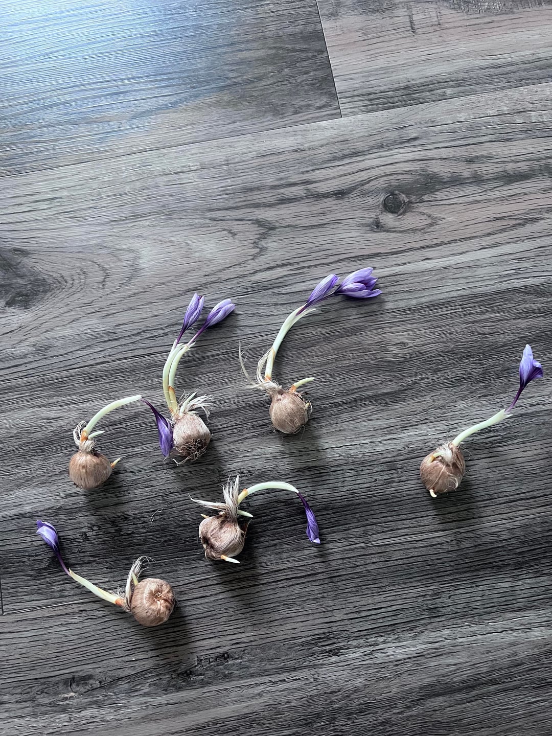 My first time trying saffron. I planted 4 bulbs about 4 weeks ago and left these to store. And they’re blooming without soil or water?? Why did it do this can you not preserve the bulbs.