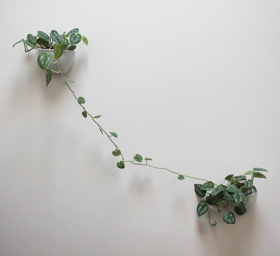 Philodendron silver – my fiancée’s idea of keeping things tidy…I like it! FAQ: plastic wall planters bought in Hong Kong. Plants are in nursery pots, not planted directly so I can easily remove them for watering