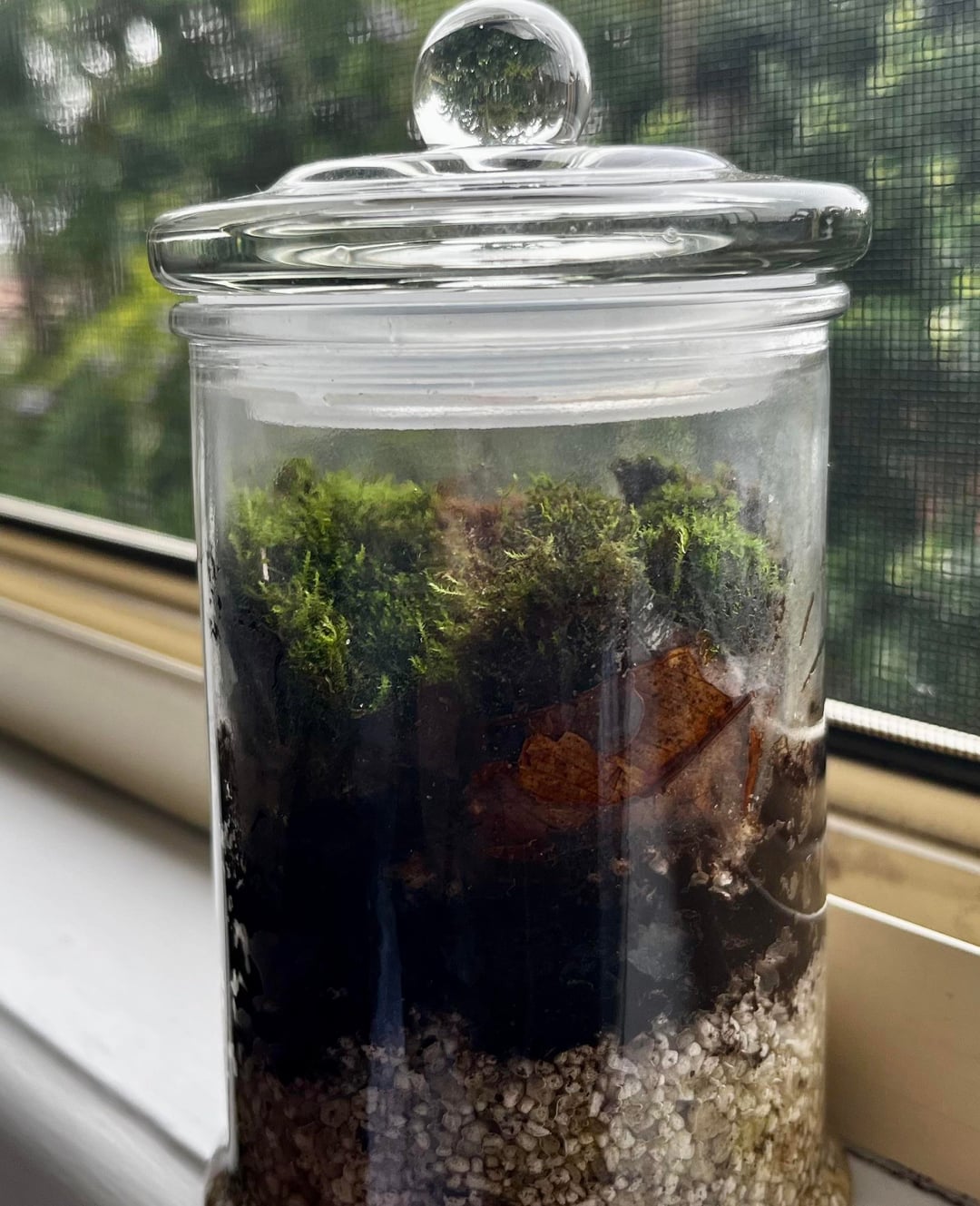 Window Sill Moss Jar Update Week 1: Last two photos Week 2: First three photos They’ve shown amazing growth in a week, they might grow out of the jar at this point! by ChemistManJesus MossariumsMosses 1 Comment Heavy_Fisherman_2405 3 weeks ago Amazing! , but isnt it too much drainage layer and substrate ?