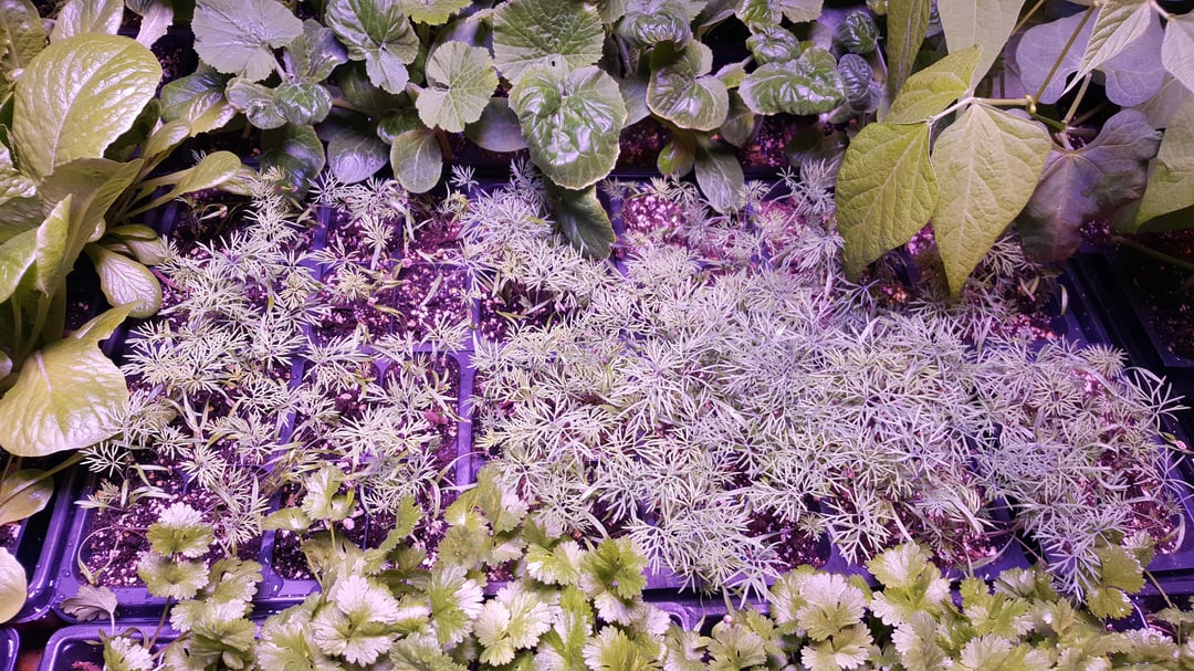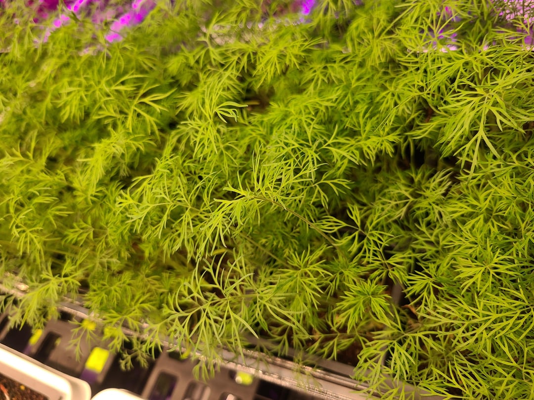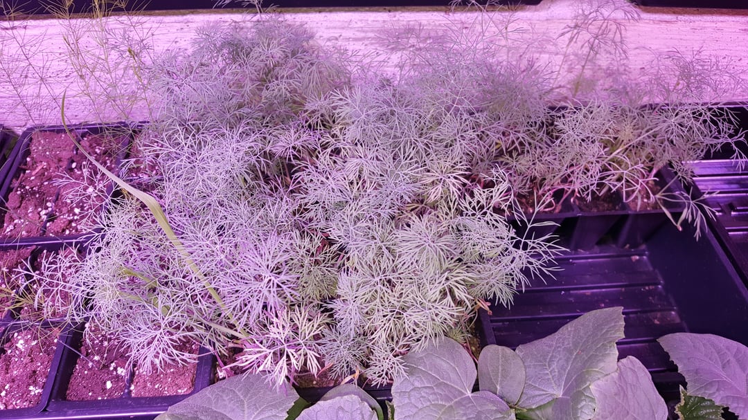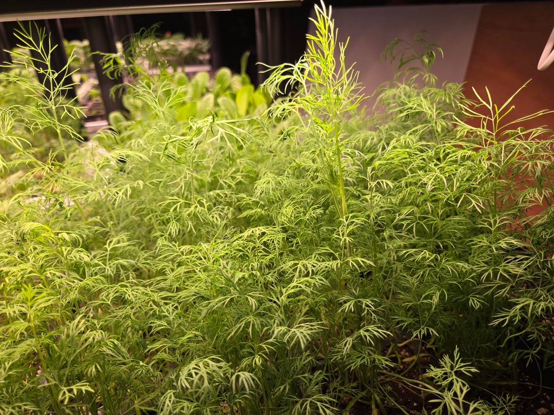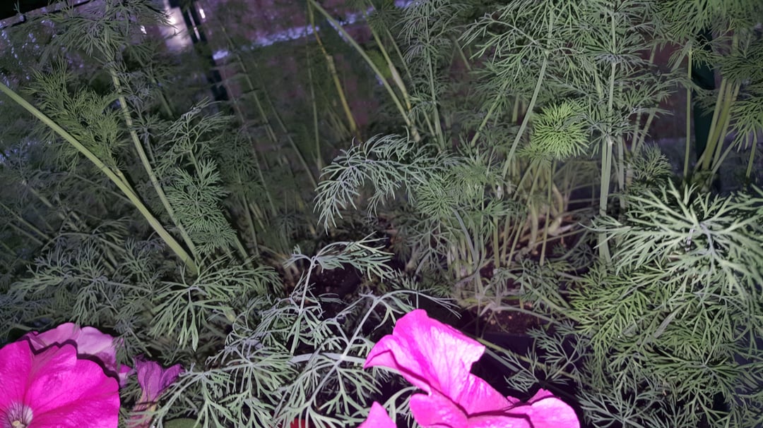 Dill grows exceptionally well indoors because it stays compact, upright, and responds perfectly to controlled conditions. Under purple-white LED grow lights, a 14–16 hour light cycle is ideal for steady vegetative growth. It prefers a light feeding of balanced herb nutrients (something in the 3-1-2 or 4-1-2 range) every 10–14 days. Soil should stay lightly moist, never soggy, with good airflow around the roots. Indoors, you avoid wind stress and temperature swings, allowing dill to grow straight, aromatic, and productive throughout its 40–60-day life cycle.