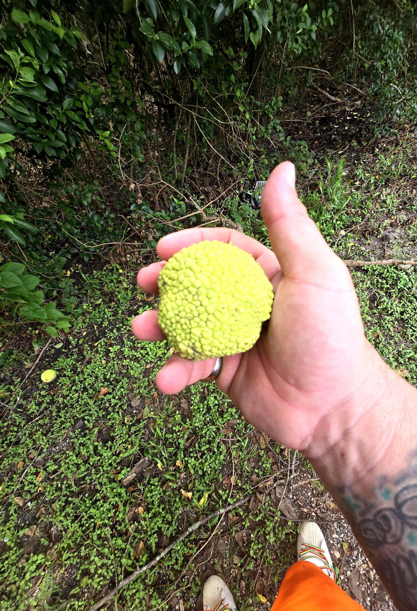 Hedge Apple, traditionally thrown from behind cover at the next kid that happens to walk down the alley.
