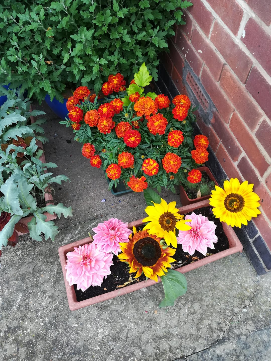 Chrysanthemums Marigolds at the back {cut flowers dahlia and sunflowers on the front} Some kind of daisies I think. I do not know the name. by Own-Formal-5031 container gardening Comments are closed.