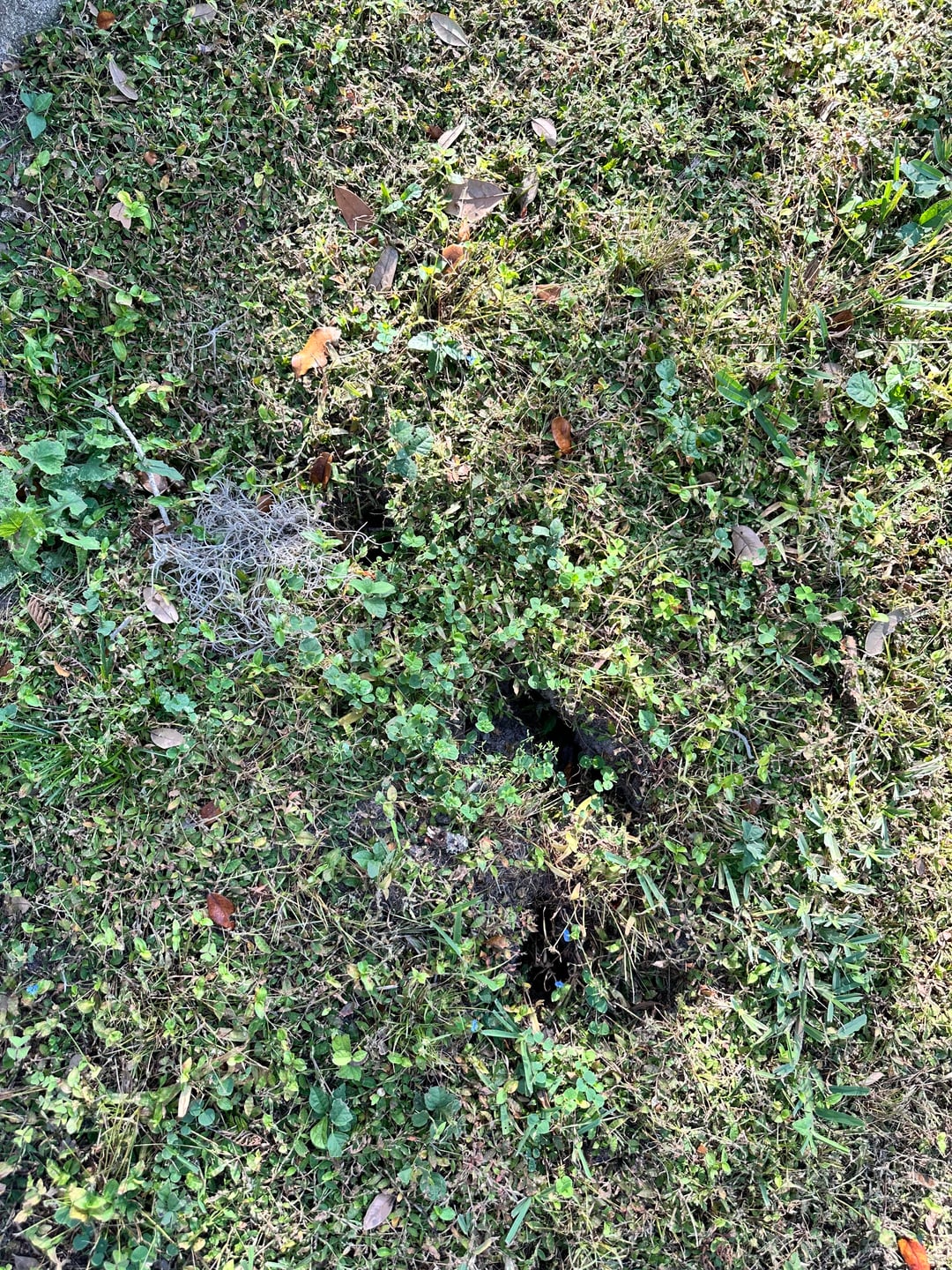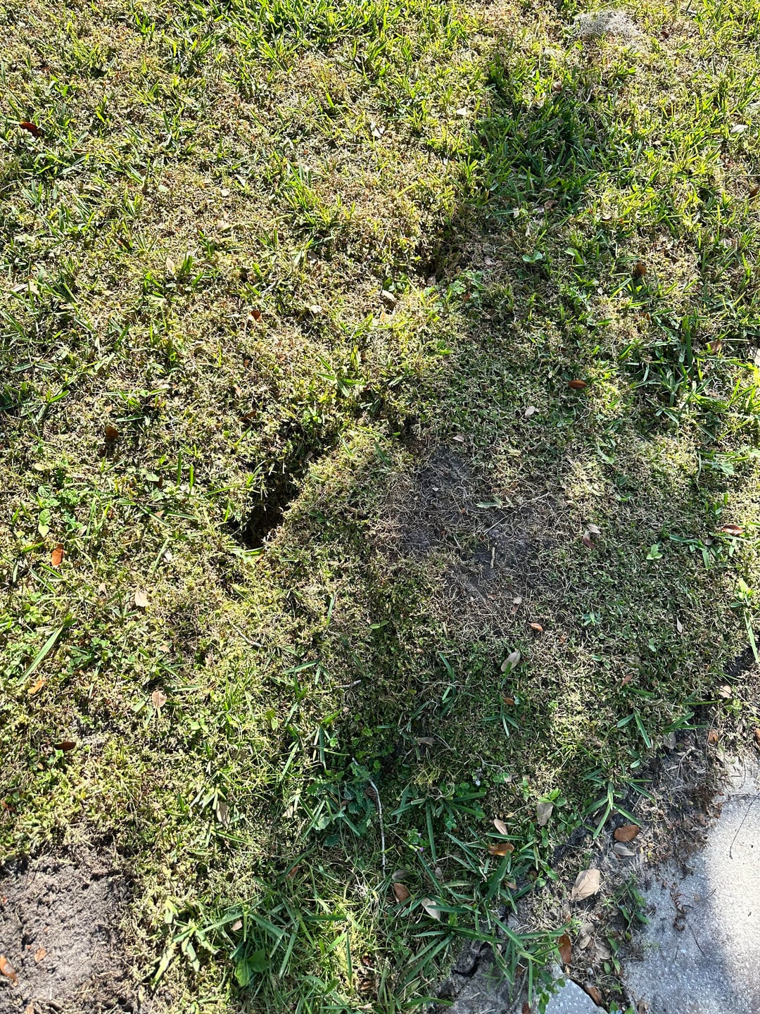 I don’t actually think that this is a sink hole. However, these fissures started appearing after I had some gutters installed on my home so I’m assuming it has to do with the redirection of water. I do plan on installing a drainage system to funnel the water down the hill, as opposed to let it run on top, so hopefully this solves it. Any advice on how to manage this for now? Home was built in the 70s and is in central Florida for context.