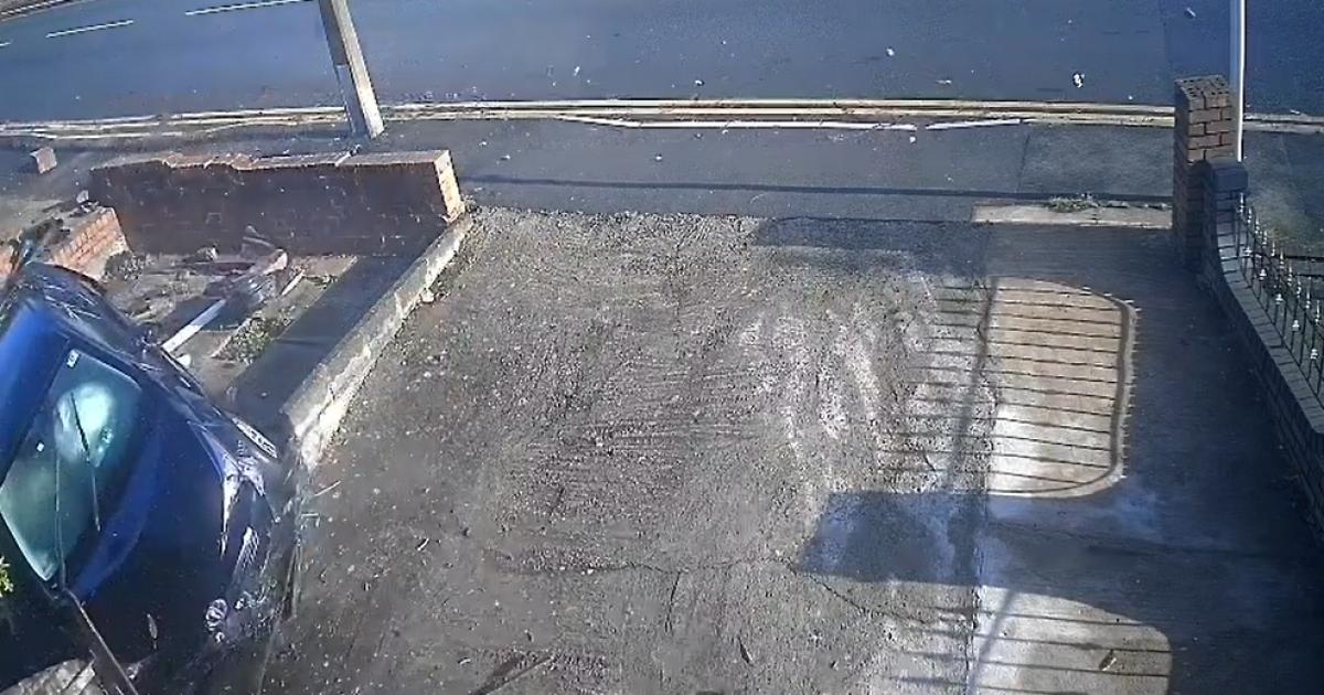 A car crashed into several walls and fences in Cradley Road, Netherton this morning (November 19) (Image: Newsquest)