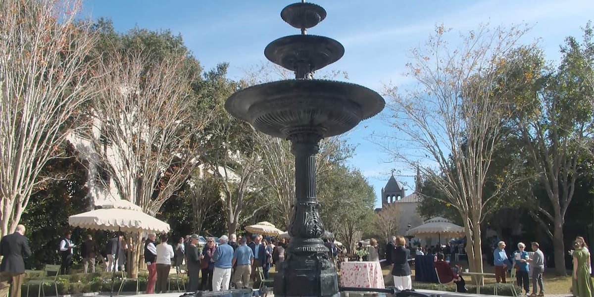 The park, named American Gardens, centers around a walkway of 68 crepe myrtles and more than 100 magnolia trees that connects the two streets with a green space. The park is surrounded by eight live oak trees with two four-tiered fountains.