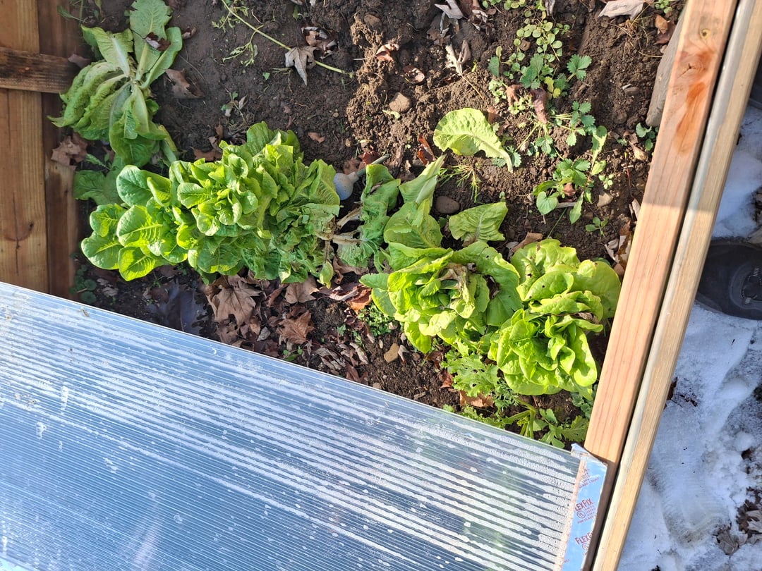 I built a cold frame out of scrap wood from my parents demolished deck and a handful of polycarbonate panes from greenhouse megastore. Already got two 6 inch snow days in the last few weeks and aim still picking lettuce, kale and mustard. I picked my carrots and giant cabbage a couple weeks ago after the first big snow. This is my first time doing a cold frame and winter gardening and Im a fan. Trying to make that hunger gap practically nothing.