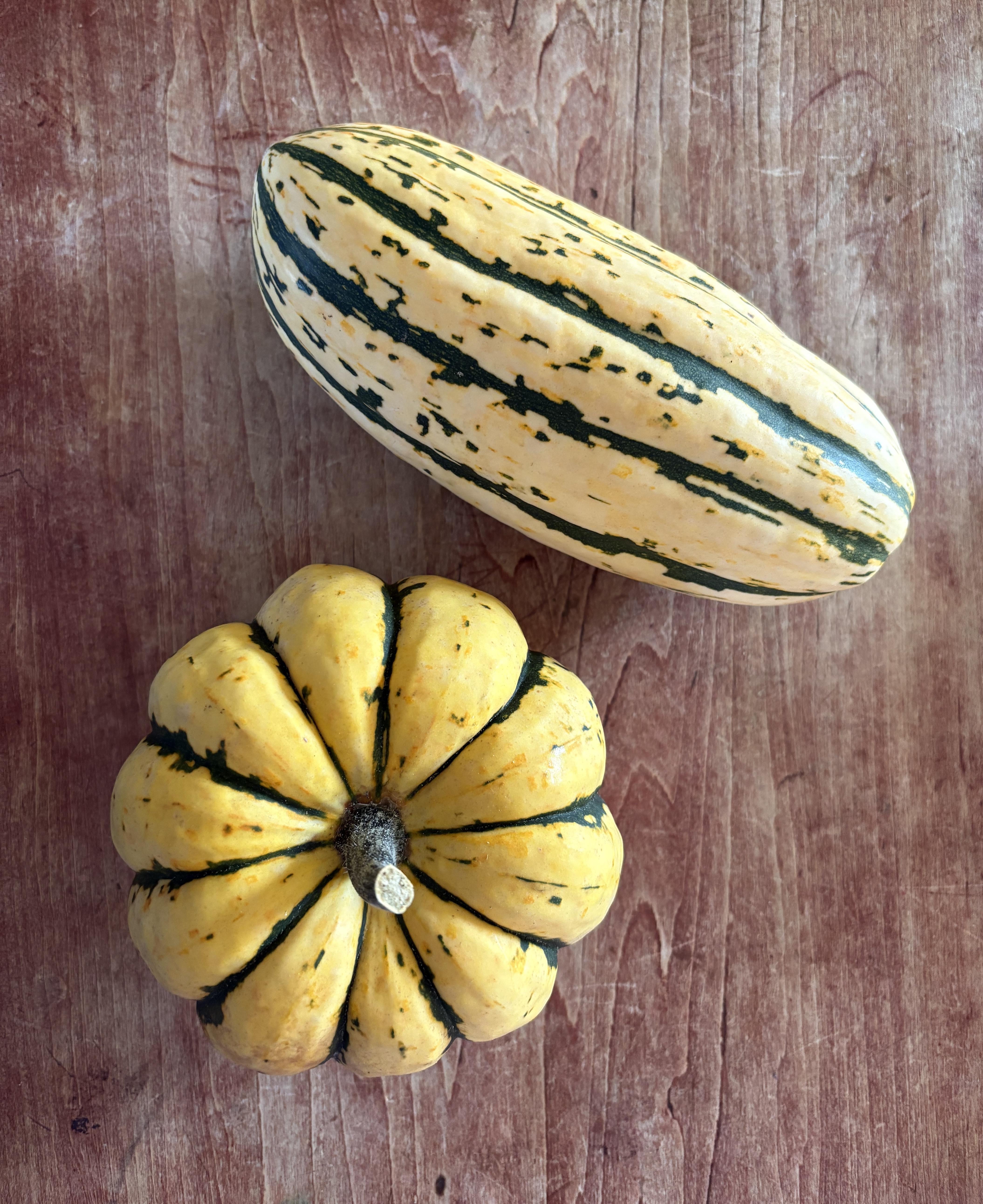 One’s delicata, and the other is likely a random compost hybrid. 😄