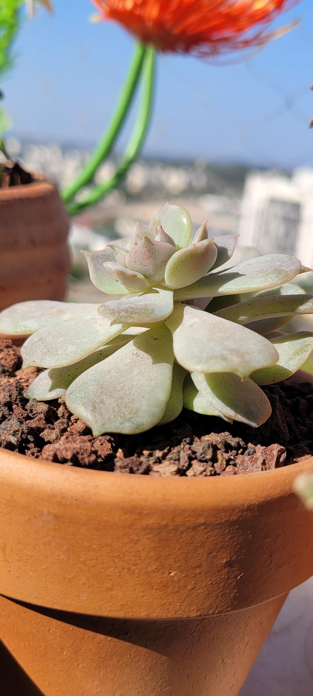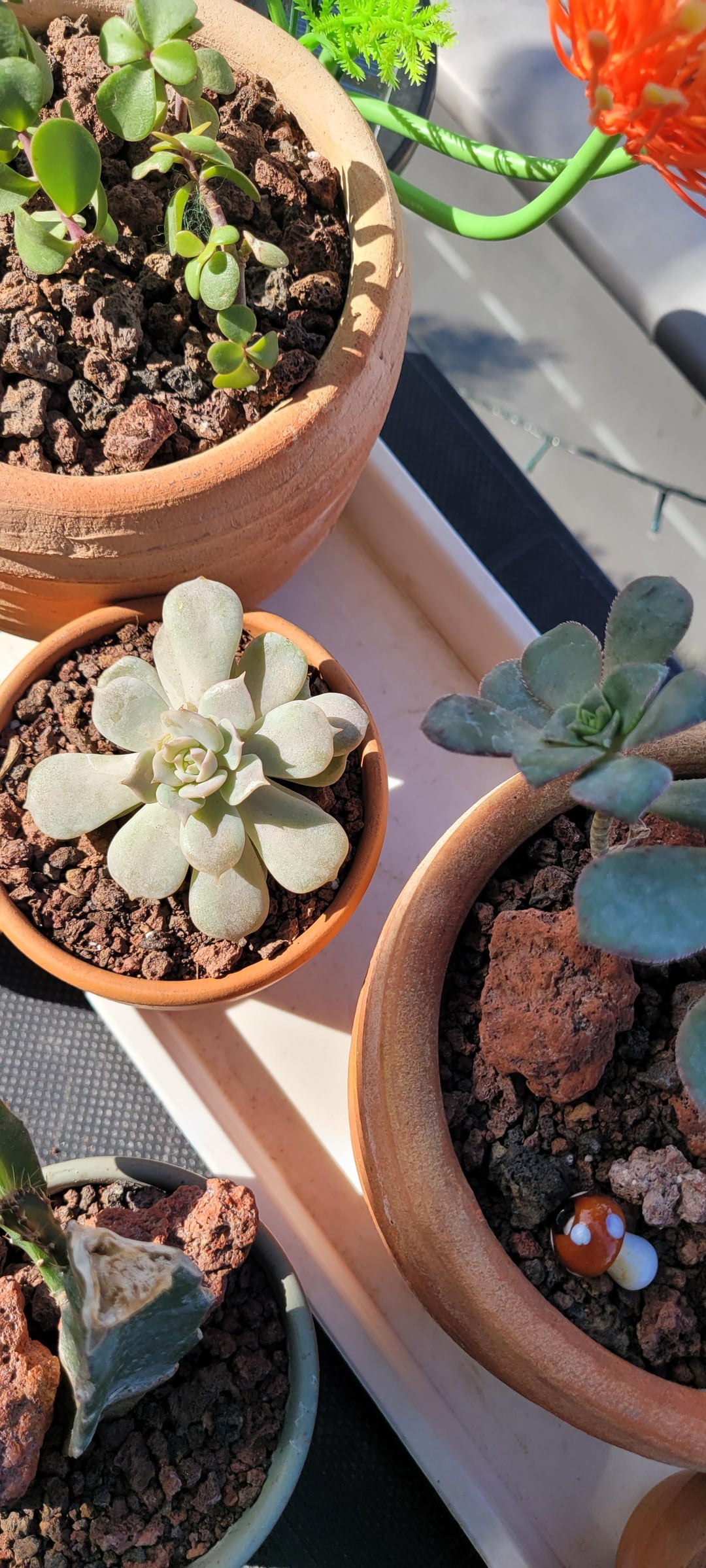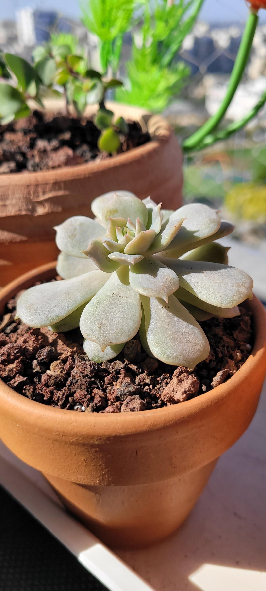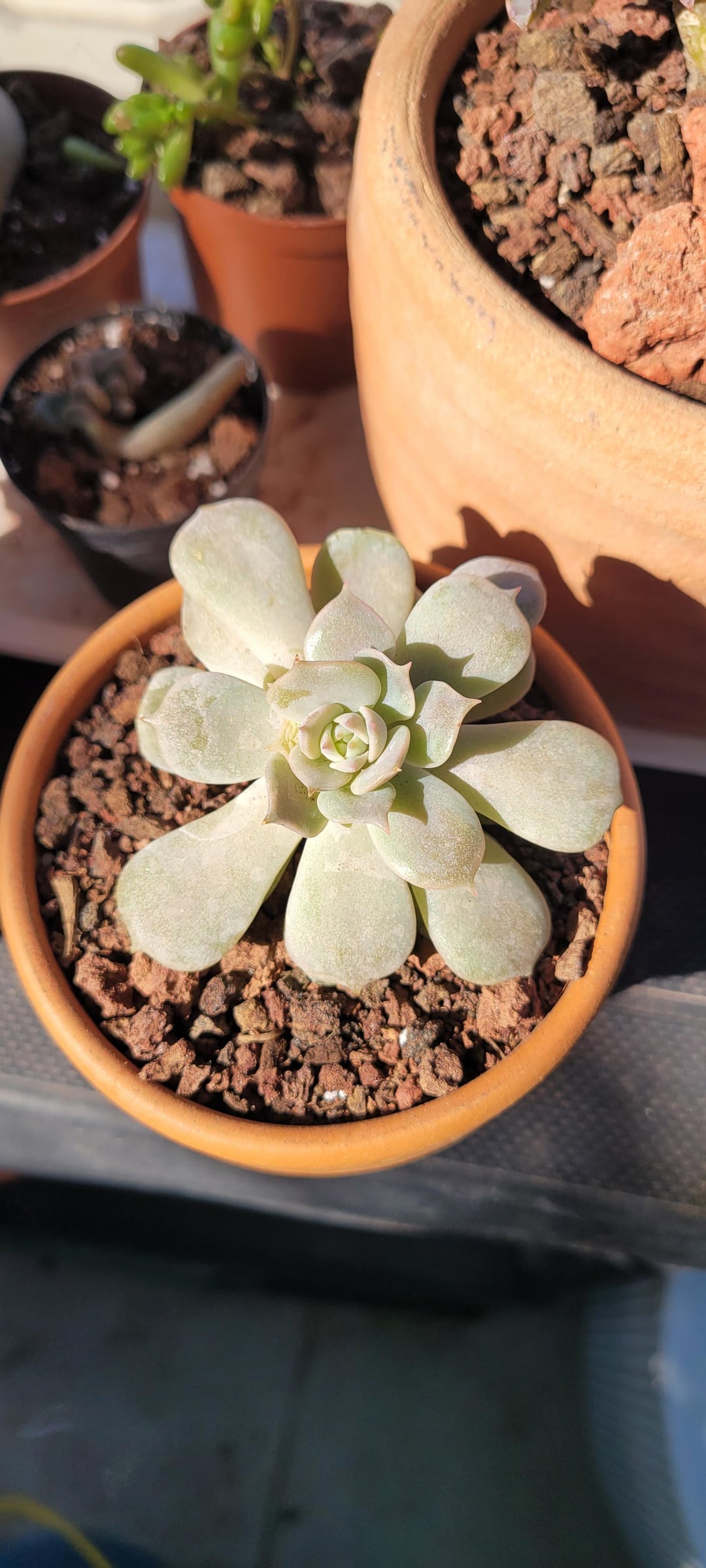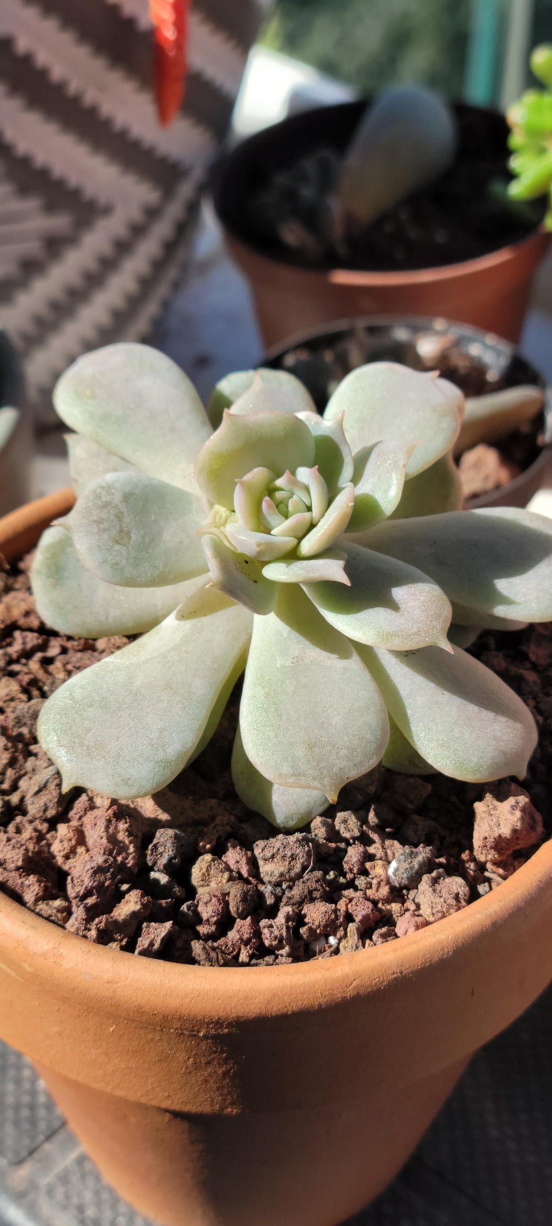 My most likely echeveria Lola, etiolated and shade stressed almost beyond recognition is finally waking up and sporting a gorgeously tight center. She's not the worst I've seen at the nursery but let's just say she definitely appreciates the new setup 💚🪴