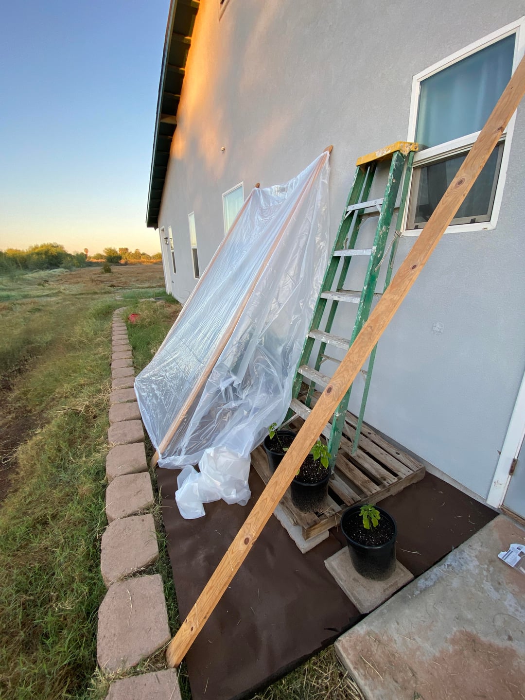 I was looking at different greenhouse kits and I decided to look around for my materials. In the end I only had to purchase the plastic and the staple gun. All in for $35 right now. The plastic is only 3.5 mil, but I live in the very southwest of the U.S. I know my next upgrade will be a thicker plastic, but I think this should work well for the time being. I do plan to continue to upgrade it. Making a door, improving ventilation and circulation. I also welcome recommendations. Thank you for your time and advice/recommendations and/or questions.