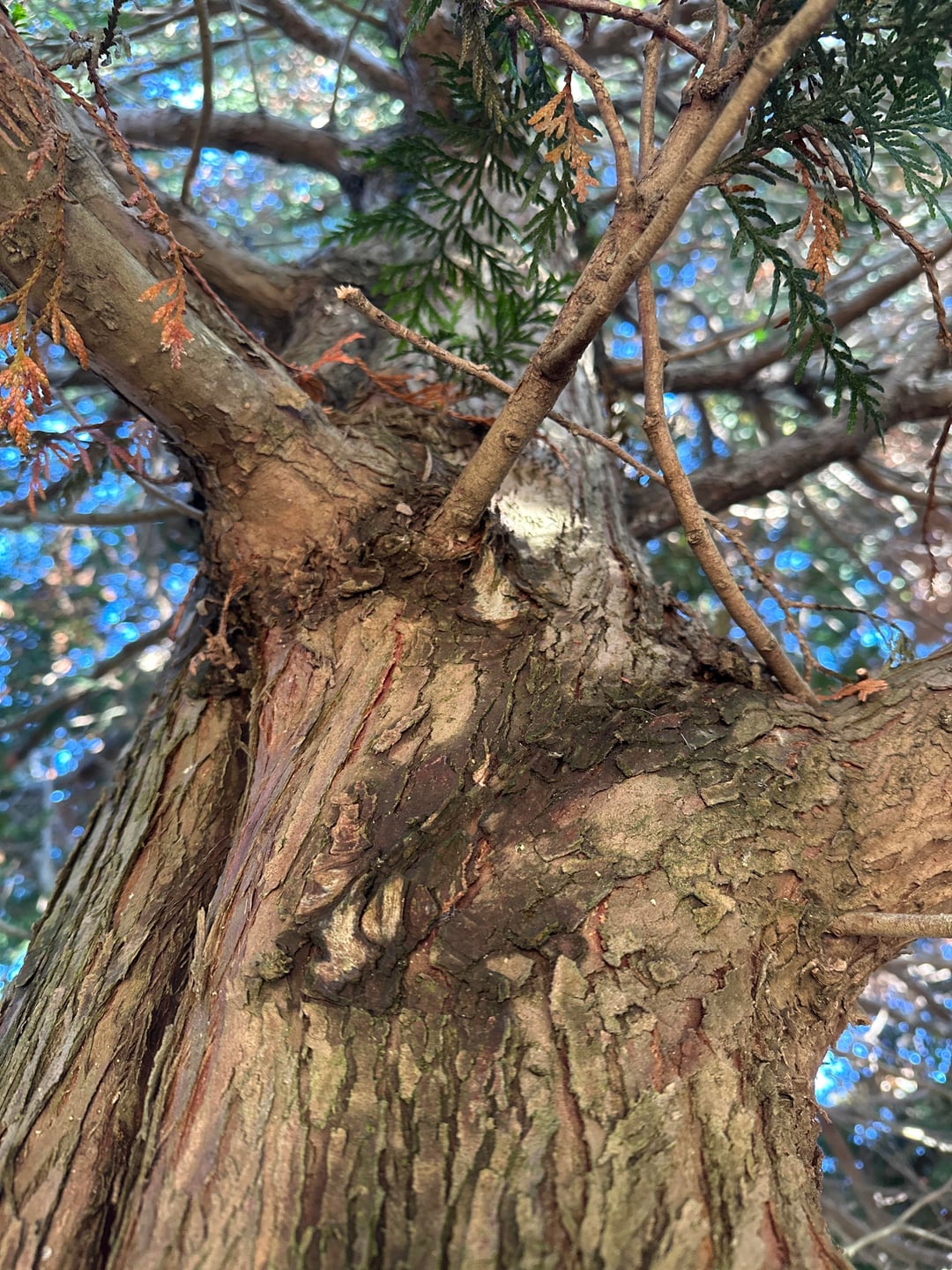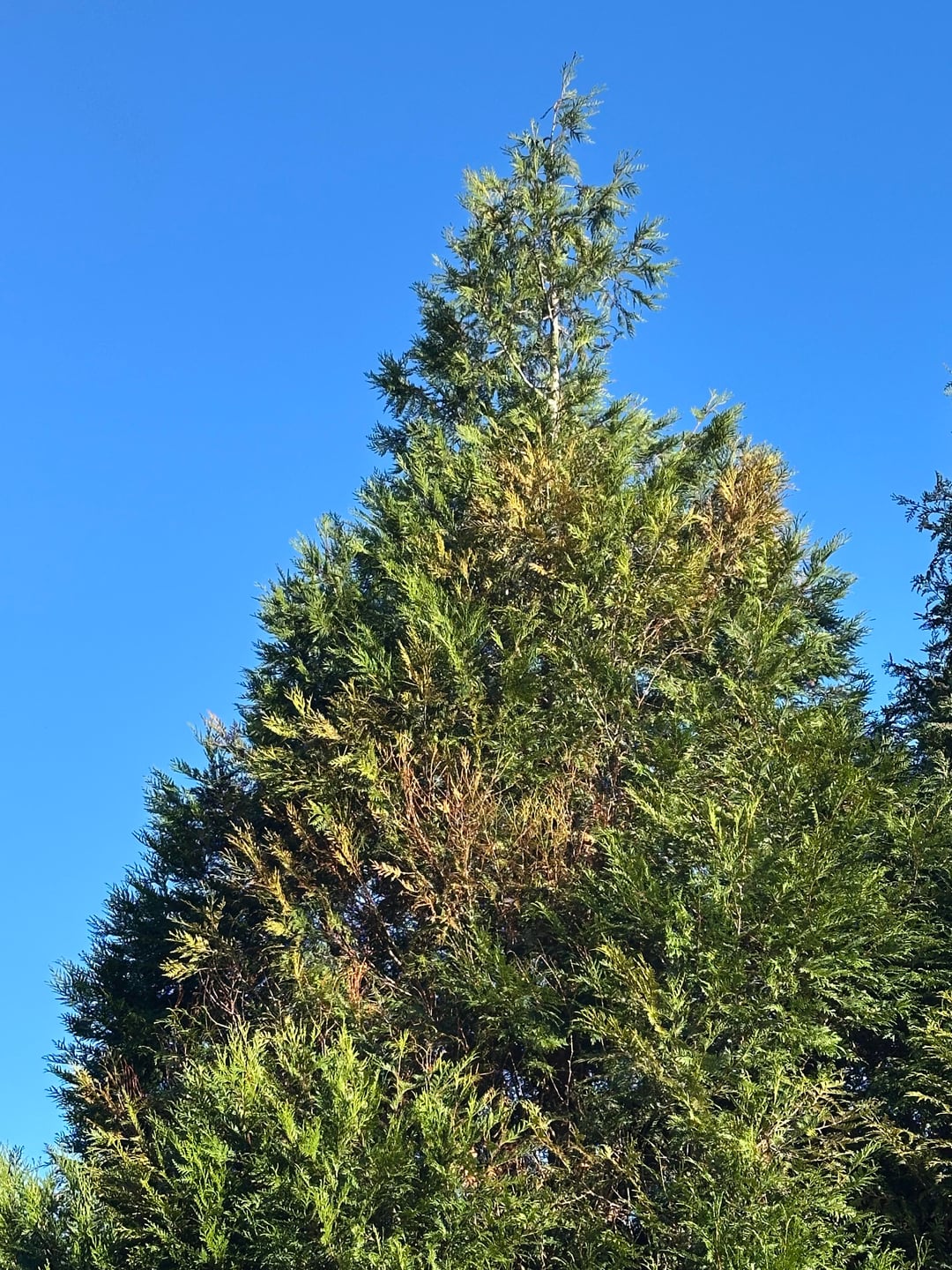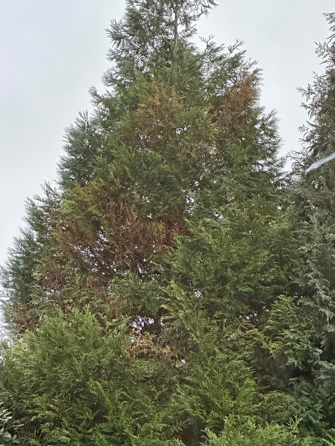 Hi all, I have a large thuja tree in my garden. Since September I’ve been noticing a spiral pattern of dried / dead branches. Spiral seems stable but most of the branches in the spiral have died off now.