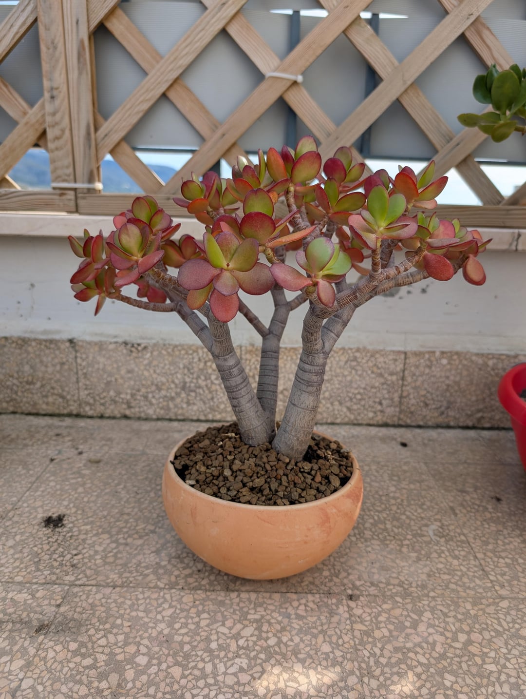 I have about 15 ovate crassulae. I love this type of essence for their beauty, speed of growth, low requirement and ease of cultivation/propagation. In particular this is my favorite of the 'Hummel's Sunset' type; elegant in growth, tidy and compact. For this reason I decided to repot it in a nice large pot, I want to make it grow until it becomes the size of half a tree. We'll see, we'll update in 7/10 years less