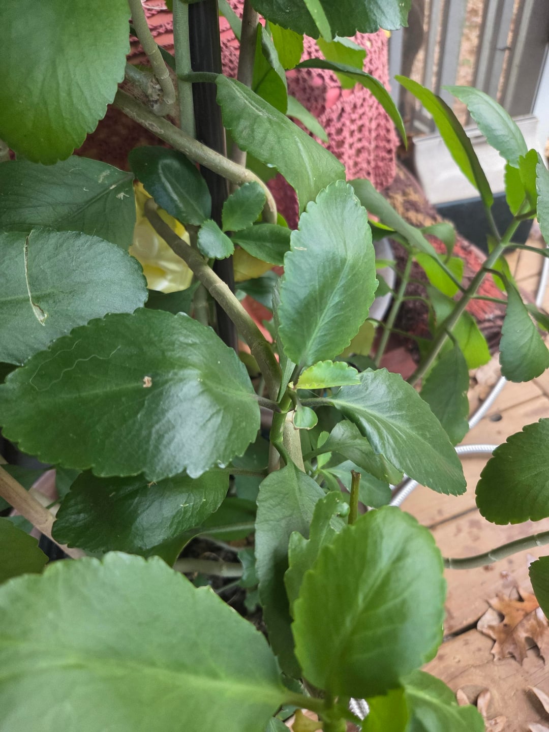 Looks like some kind of kalanchoe. If that’s the case don’t let your dog nibble on it, they’re toxic. Does your dog like to eat plants out of the garden?