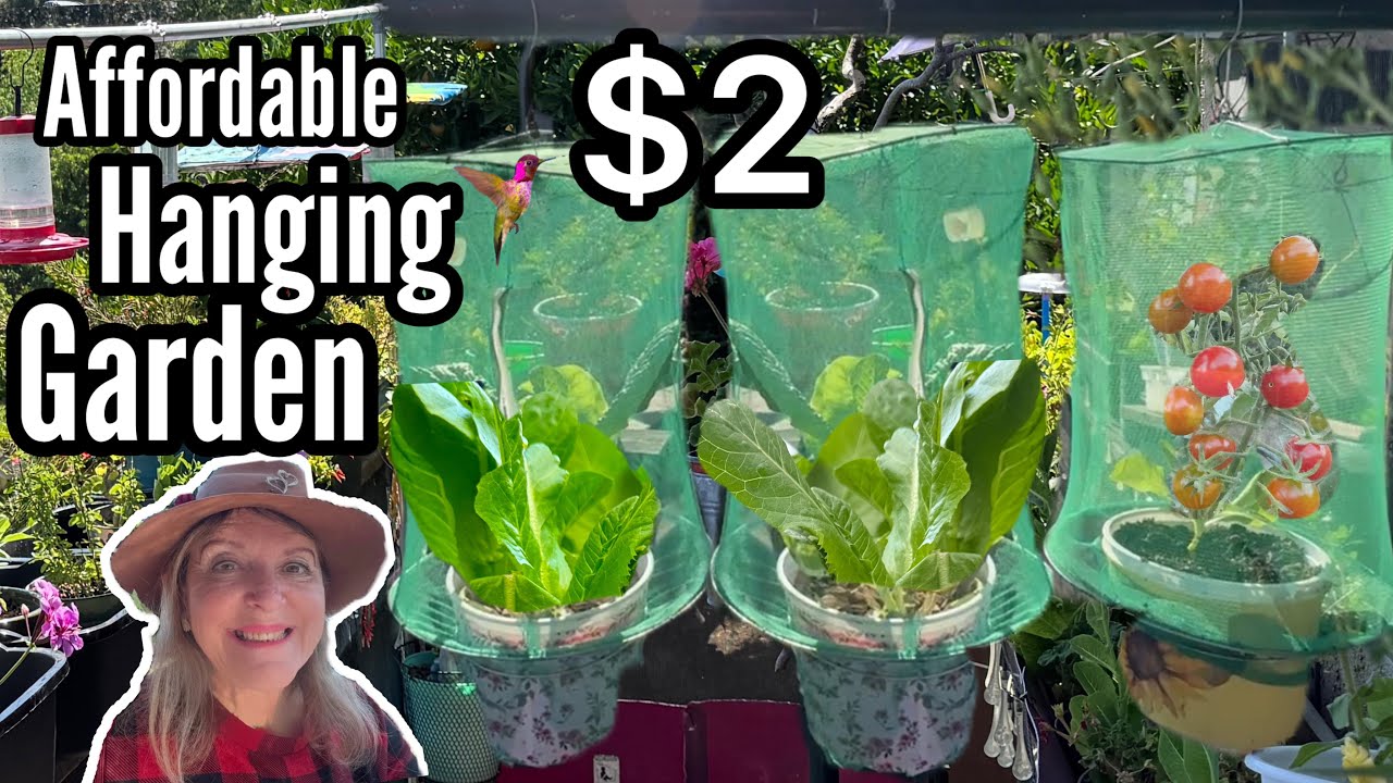 Now, this is an amazing product. I found this at Deal Hunters. I had no idea what it was. It looked interesting. It had tulle on it. You know how I love tulle in the garden and wire. And well, I figured I can do something with it. And something I did. The first thing I did was look it up. It’s a fly catcher. And I guess because they’re somewhat disposable, they’re really cheap. But I know what I can do with it. And it’s going to last for a pretty long time. You’re supposed to put it out in the stables or around horses and put a little bowl underneath and then the flies go in there and theoretically they go up instead of sideways and you catch flies and then you dispose of them. Well, I’m not going to use for flies. If the flies are trapped in there and it’s a fly trap, well, maybe we can trap something else in there and keep the flies out, right? So, I’m going to show you a bunch of different methods on how we can set this up. The first thing I’m going to have to do is cut the bottom. Now, I did test that hoop. See that hoop that holds the bowl? Well, it holds a lot of different size food containers, too. We’re going to cut that off. We don’t need it. And I also unhooked the hoop from one of the wires. There were three wires that holds that hoop that holds a bowl. Theoretically, we’re going to put something else in there instead. This thing. This is a food container I painted up. There’s one that’s not painted. These are large sour cream or cottage cheese containers, so they’re free when you buy it anyways. Right now, I unhooked it. Like I said, I use my pliers. And it’s still hooked on by the other two wires. And now we’re going to cut it where we can slide the bowl in there, our food container. And then what we’re going to do is drape the tool down. This is fantastic. These things sell for between two and $3 each, depending on how many you buy. I’m going to tell you, can I make them for that price? Maybe if I got all the wire I needed, but the time that would be involved. Oh, no. Even when the tool wears out, if it gets holes in it, we can drape more tulle on it. And I always have the link underneath. You get 54 in wide, 40 yards long for $10. My goodness. I would drape it differently and make it easier. But look at this right now. See how I’m unhooking it? I can put a lettuce in there. And of course, I can plant the lettuce directly in there. And then I can drape the tool down. Now, you do have to kind of work with it a little bit the way this is, but that’s okay. I love this. We can hang it out on a balcony, a deck, in the garden, off a tree, anywhere you want. I’m going to use those clothes racks from Walmart because you get them for 10 bucks. You can hang a whole bunch of them. And I bought a whole bunch of them. I love them. And of course, I’m going to go ahead and tag it so you can go look at it. You can’t get it any cheaper. If they were selling those clothes racks for plants, it would be five times the amount, but because they’re selling it for something you put in a laundry room, I paint them up. They look fantastic. And they’re only like about $10. Now, I’m just kind of pulling the tool down, the netting around the pot, so no insects will get in there. And look at that. You can hang this outside and no bugs are going to get your lettuce. Is that not wonderful? And it’s just too cheap to try to even make, but you’ll have the skeleton of it if the tool breaks down to drape more tool on. Now, if you don’t want to paint the containers and you don’t want to look at them knowing that there was food in there, you can get a pair of cheap leggings at the thrift store. I see them all the time. Won’t matter what they look like. Cut them up and you slide the fabric over the food containers. I did a whole video on that a while ago. and you get the color and the style you like. Is that not cool? And just trim them up. And now your container doesn’t have to be painted and it will look really cool when you hang it up in this fly catcher. But like look at that. But we’re not using it as a fly catcher. We’re going to grow in it. Now I’ve got another method that I tried and I absolutely love this. You can get Velcro real cheap anywhere and everywhere. Walmart, Dollar Tree, Target, everybody’s got it, even the hardware stores. And I cut them in half because they were too wide. Now, what I’m doing is I’m opening the seam where the tool was put on by the manufacturer. And we’re going to just kind of open it up. Now, you’ll see as I go what I’m doing. I could cut a hole in it, but since there is a seam there where they stitched it, I’m just going to kind of cut the threads open a little bit and make a hole there in the seam itself. Take your time because we don’t want to just tear it all open because I think we can put this together really neat where we’ll be able to do it a little differently than the first one I did. Now, with the first one we made, we just have to put on the table, slip it out. I’ll show you that when we’re done with all this, how easy it is to do it on a table, but we’re going to do this one in case you want to not take it off where it’s hanging cuz it’s not that heavy. It’s a small container, so even the soil and the plants won’t be a lot of weight. But with this, we can leave it hanging up and we can get inside of it. It will depend on what you’re growing. If you’re going to do lettuce and you’re just going to leave it, well, then you could do it the first way. Well, you don’t have to do anything, but just put your container in there. If you’re going to grow something, let’s say parsley, cilantro, some sort of herb where you’re going to be harvesting, let’s say, every every day or every other day, then we can do it this way. It’s a little extra work, but it’s not much at all because we’re not going to sew. I’m taking the Velcro. I made two strips. It