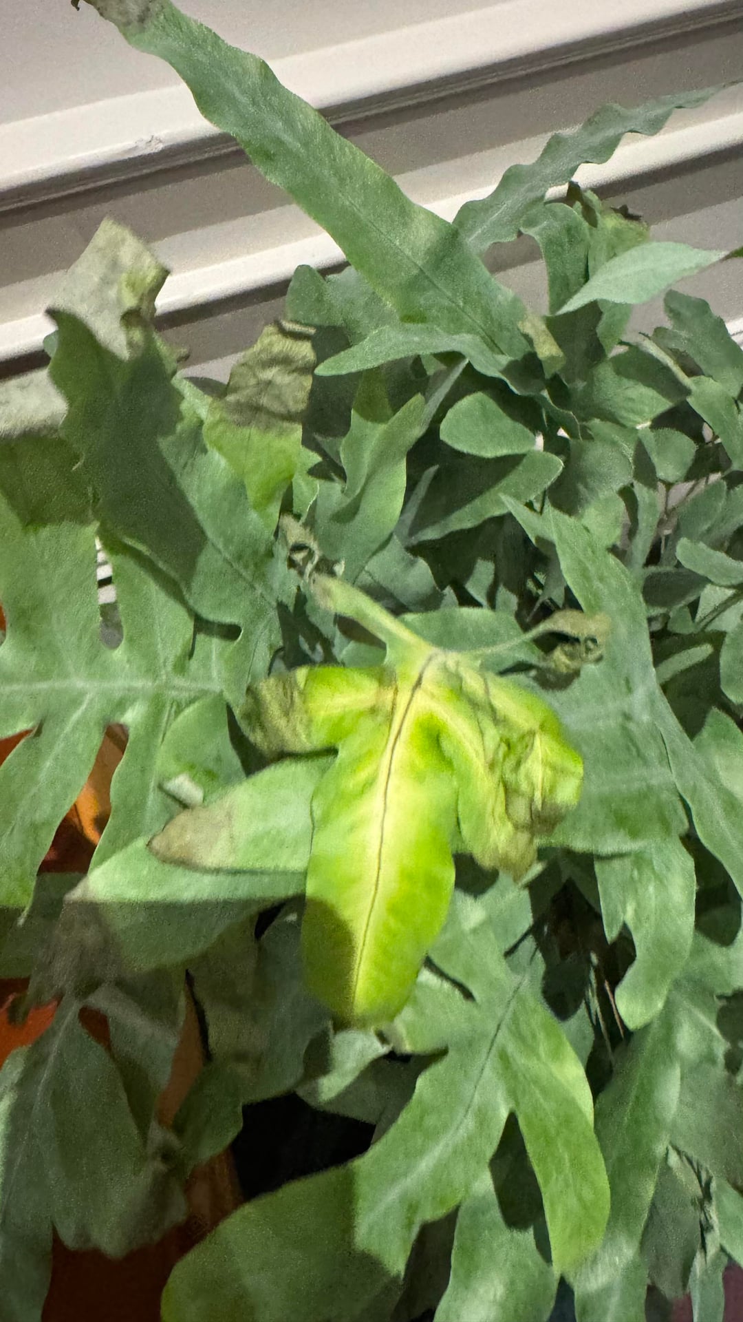 Hello this Phlebodium Aureum Bluestar is getting increasingly unhappy. It sits to right of a n east facing window which is shaded by a tree later in the morning. It gets a bit of direct light in the morning but the rest of the day it’s in a shady spot. The soil is damp but not waterlogged. Leaves are falling out, turning dark and wilting. Any ideas?