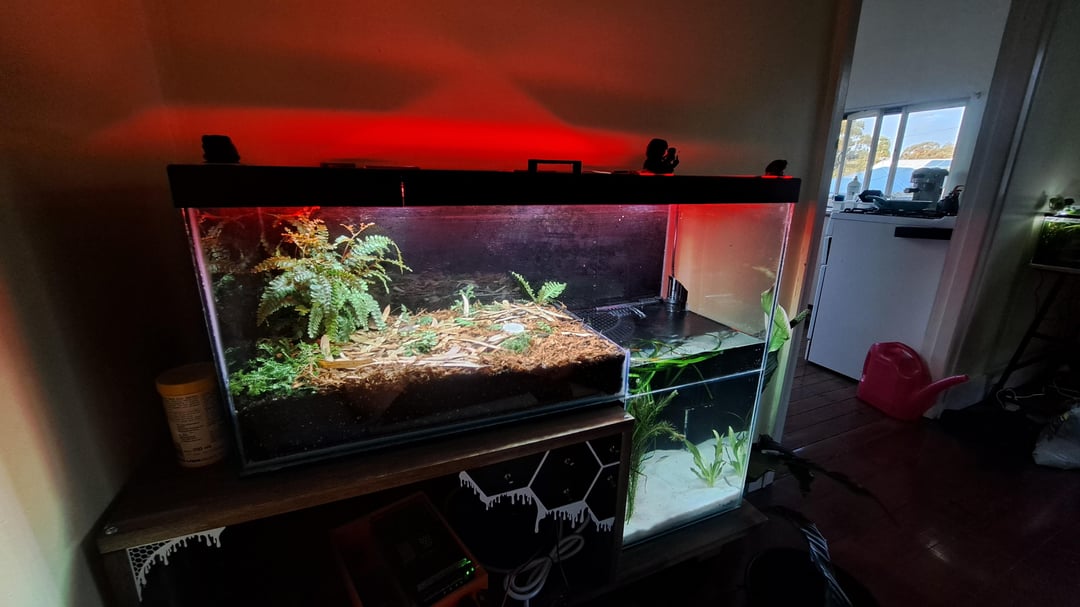 Couldn't find any drop tanks for sale, so I decided to try and make one myself. by A-turnip vivarium 2 Comments bobbybignono 1 week ago Thats so cool!! I bet the frogs will jump with joy! Vast_Reaches 1 week ago That’s so cool! I wonder if you could cut the L shape glass on your own or does that require a special tool.