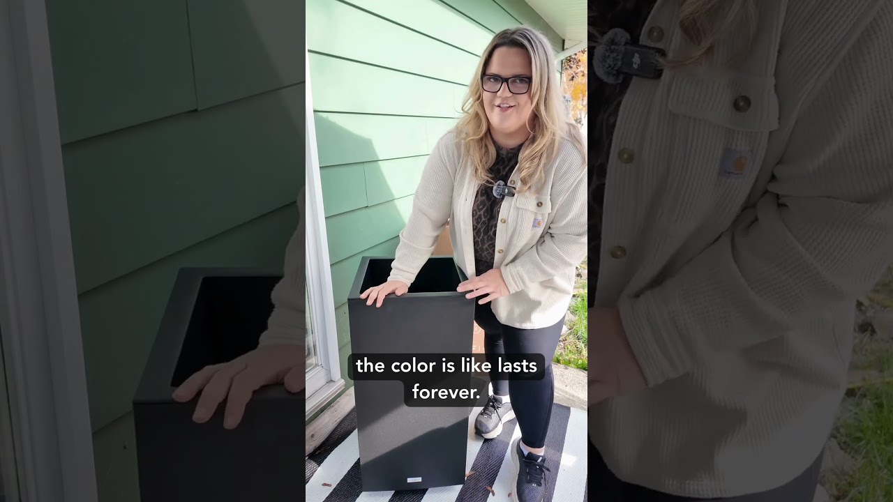 My name is Vanessa and I do seasonal planters in Ontario, Canada. One of the questions that I always get asked is what planter should I buy? One of my favorite brands to buy is VeridC. You can find them online. They have their own website or through Amazon. And they are Canadianade, which is awesome. We are in Ontario, Canada, so I love that they are lightweight and super durable. They are extreme weather tested, so in our harsh Canadian winters, they’re fine outside. Um, that’s something that people always worry about. Is it going to be okay outside? Um, they are the color is like last forever. I have clients who have had these outside for years and they still look great. They still look nice and sharp and black. Um, and they have a nice they come with a insert pot so it’s already got like a shelf so you don’t have to go all the way down with your soil. I recommend if you’re going to get one of these, put a bag of gravel in the bottom just to stop it from tipping over just cuz it is lightweight. And then in here I would put some landscape fabric at the bottom just to block your drainage holes. And then you’re going to fill it with some potting mix. But VerdeC is a fantastic brand. Highly recommend them. This is their block series planter. And this is the tall. It’s 31 12 in high, I believe. Um, great height to start with because then you can have a really nice big dramatic planter. They do have other options on their website, a little bit more traditional, other colors. So depending on what your house looks like, tons of options to choose from. Make sure to check them out.