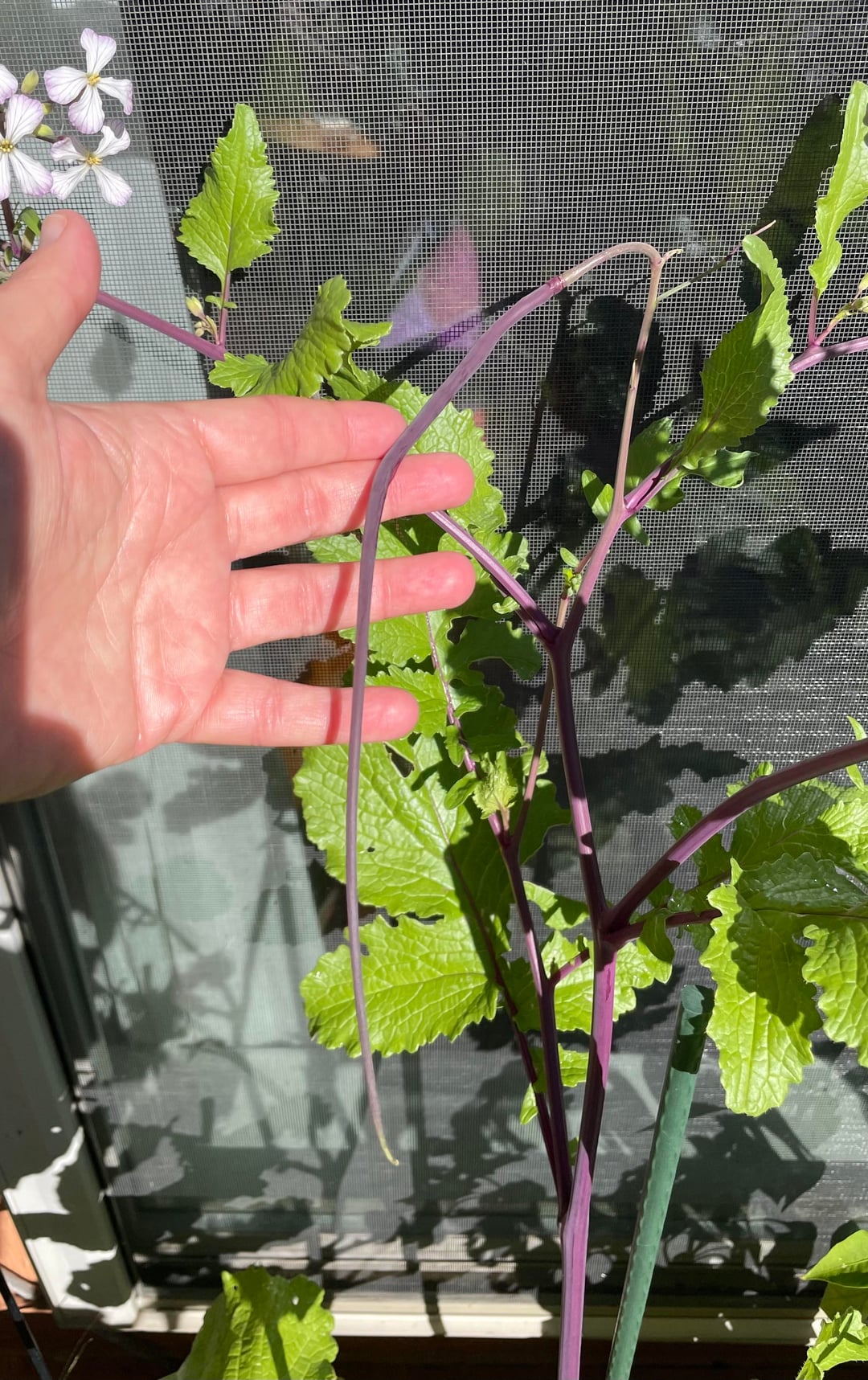 I just started growing these this year and LOVE them. You don’t eat the root like a normal radish – you eat these gorgeous long purple seed pods. They taste like radish! You can sauté them or toss them raw into salads. This is a fun addition to my spring and fall garden.
